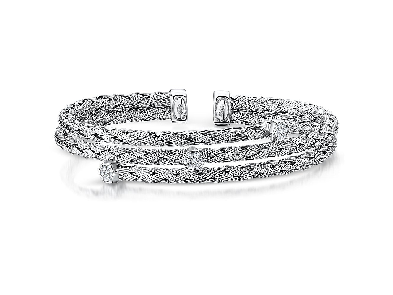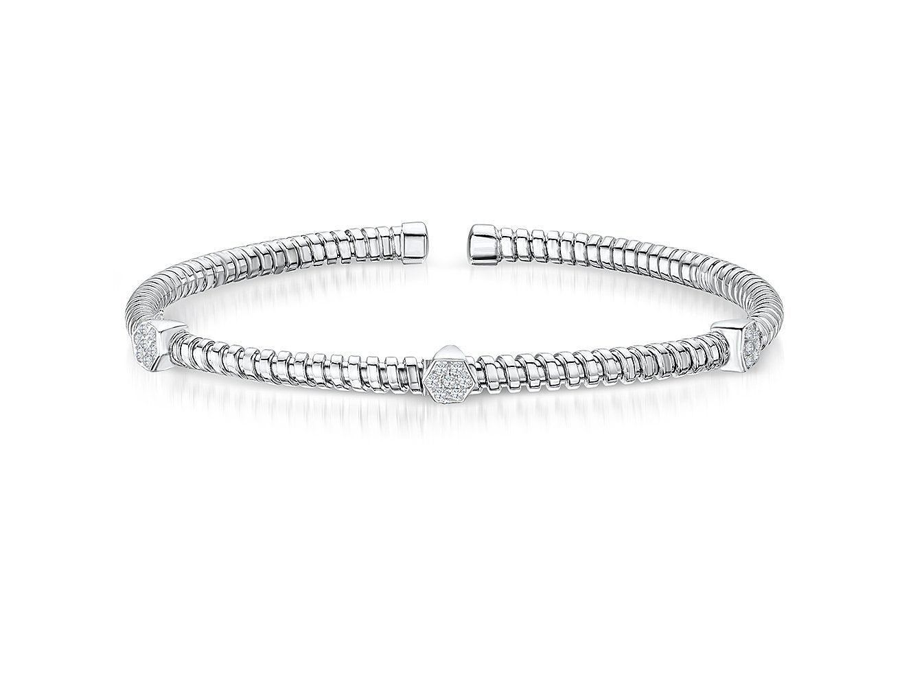 Sterling Silver Bangle Alternatively Set With Cubic Zirconia Sections