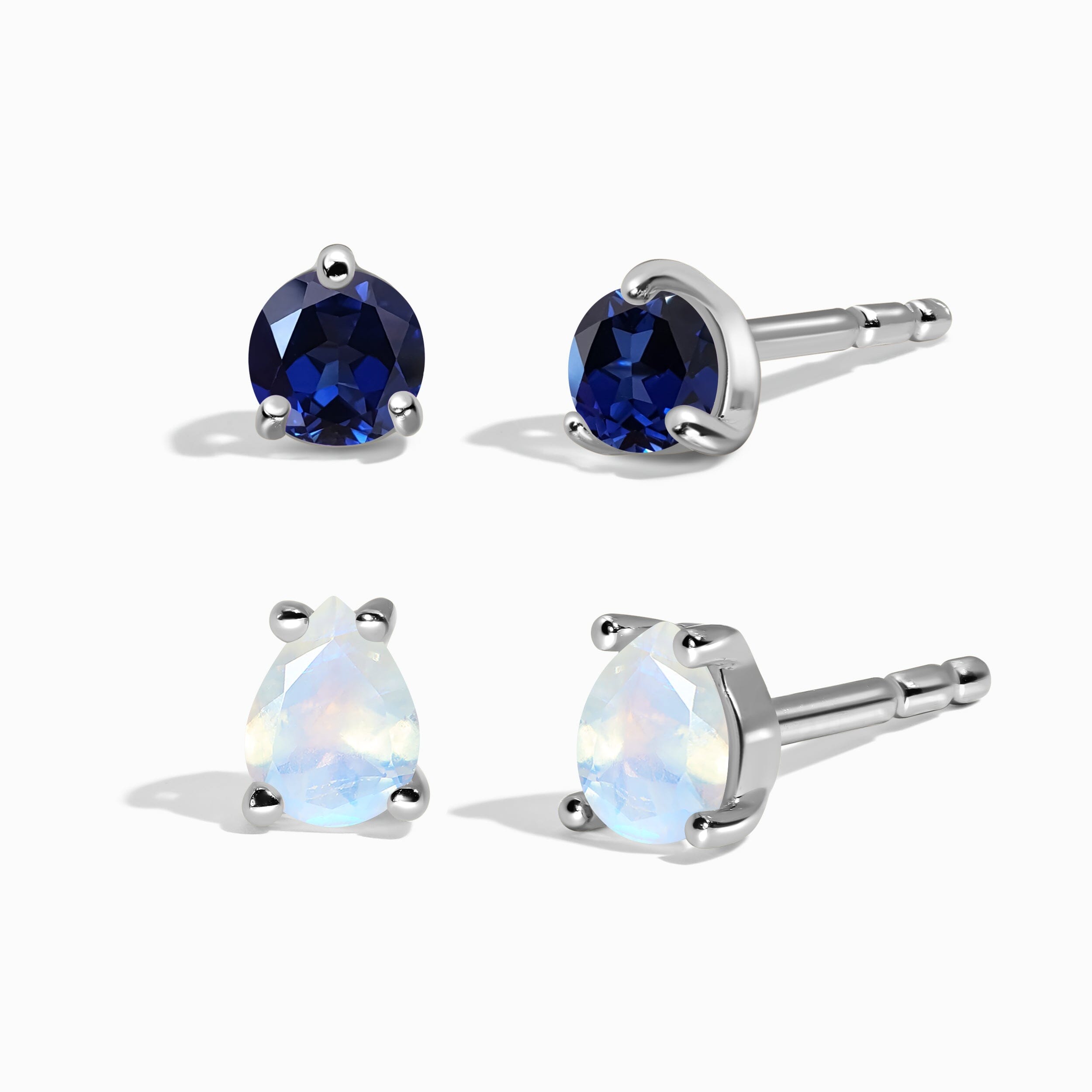 Blue Sapphire Moonstone Petite Round & Teardrop Studs