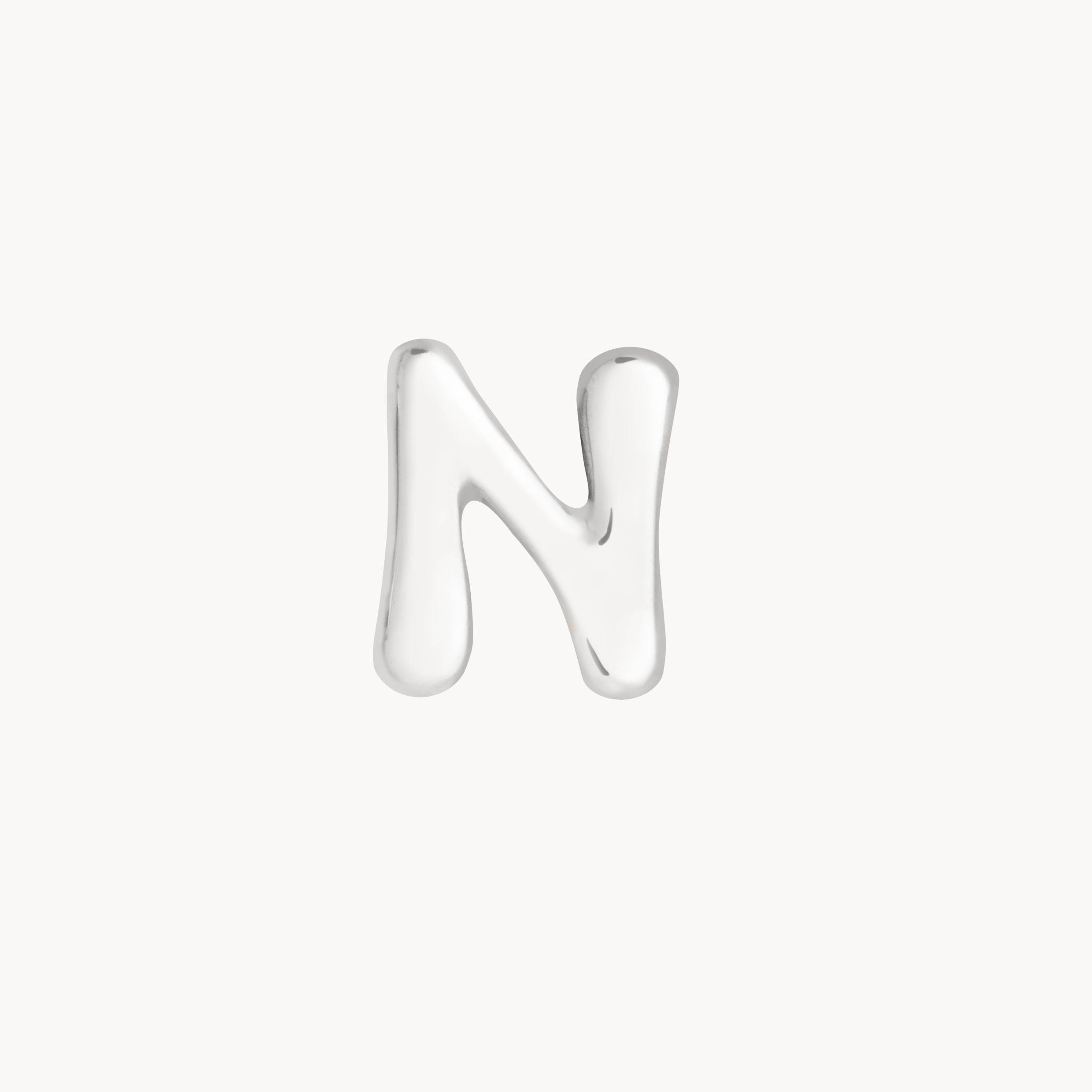 N Initial Click Charm in Solid White Gold