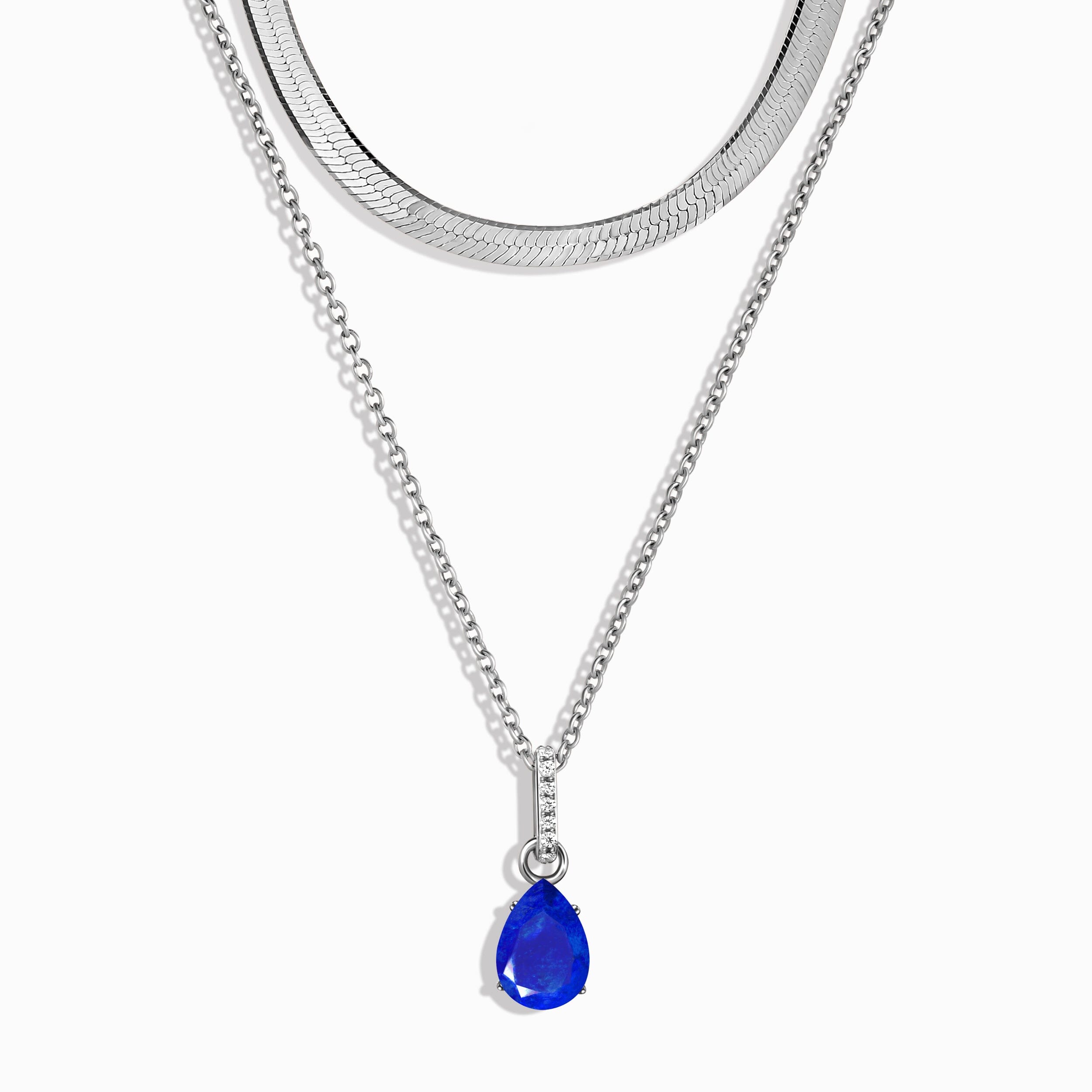 Lapis Lazuli Birthstone Sway Necklace & Herringbone Chain