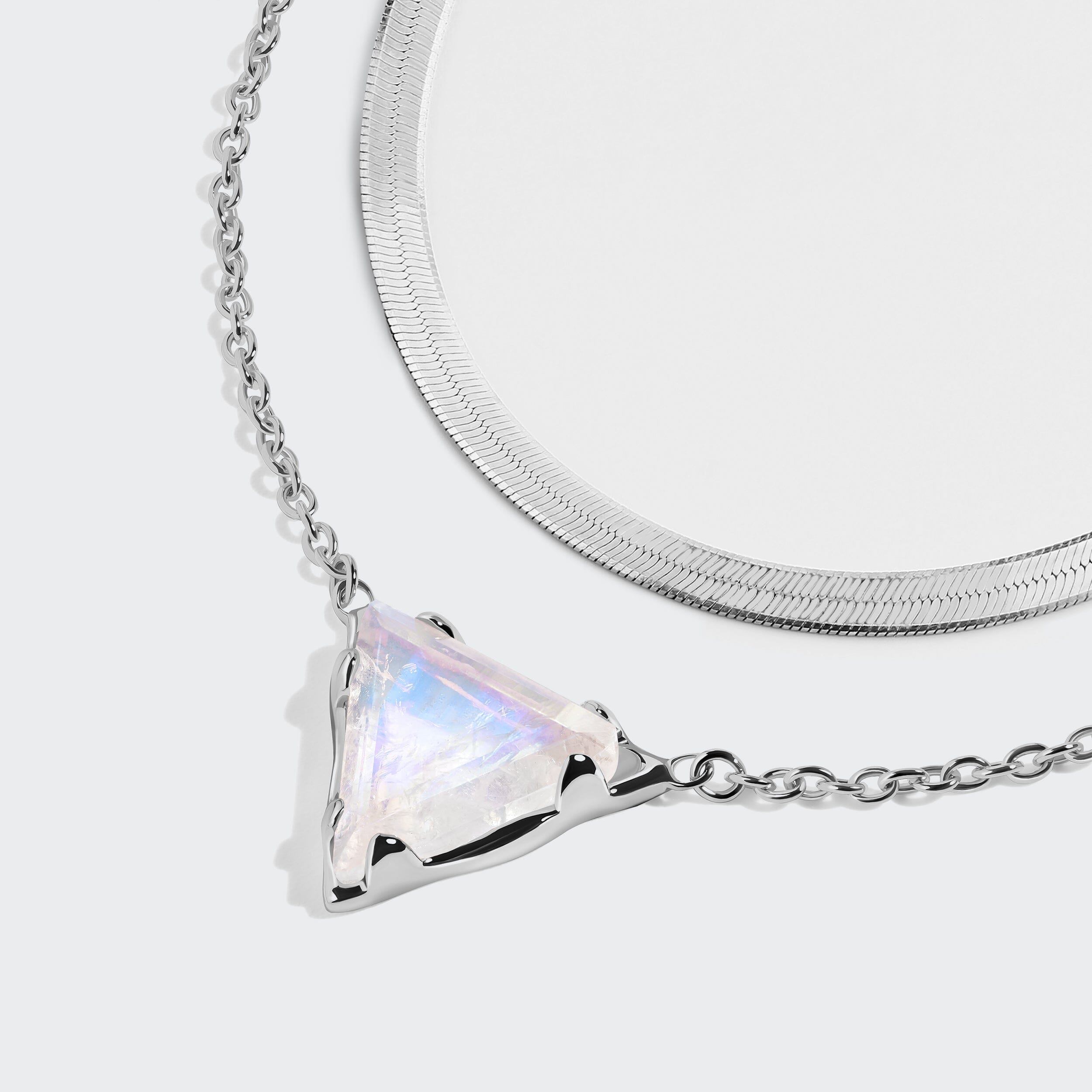 Moonstone Heroine T-Lock Necklace & Herringbone Chain