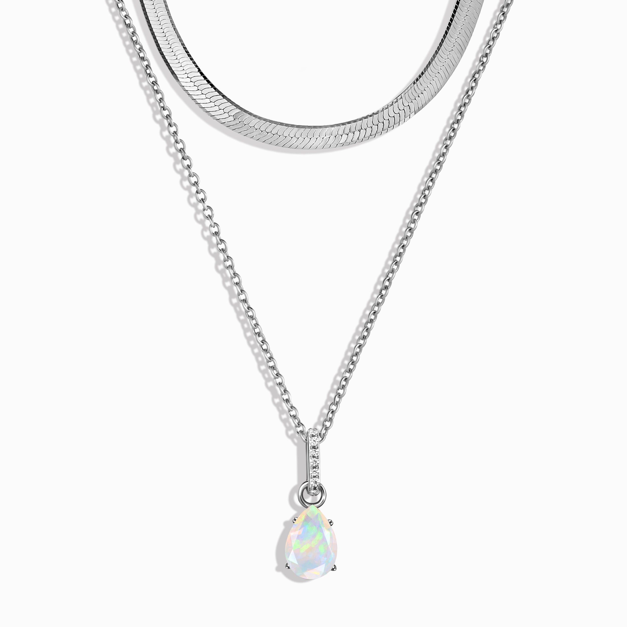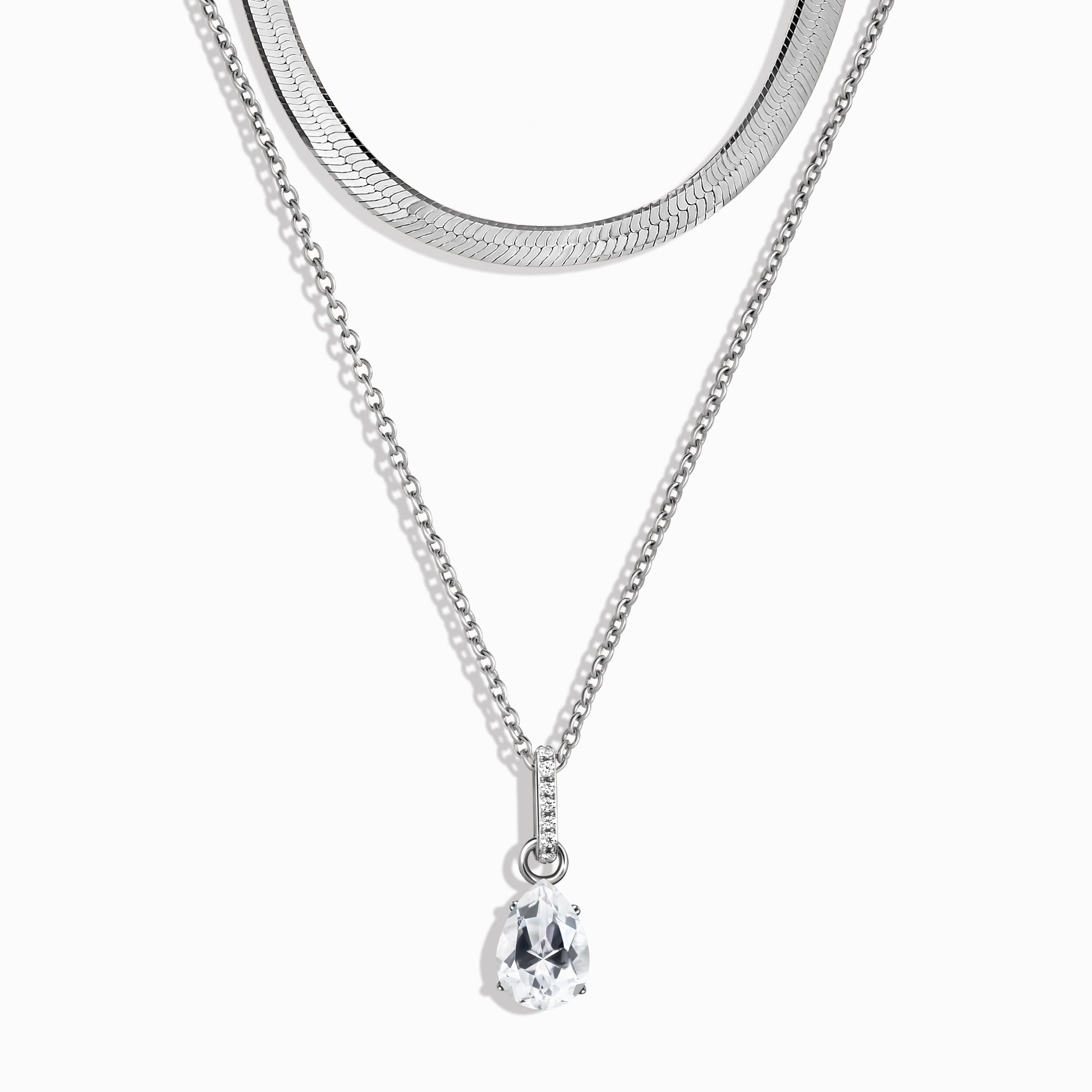 White Topaz Birthstone Sway Necklace & Herringbone Chain