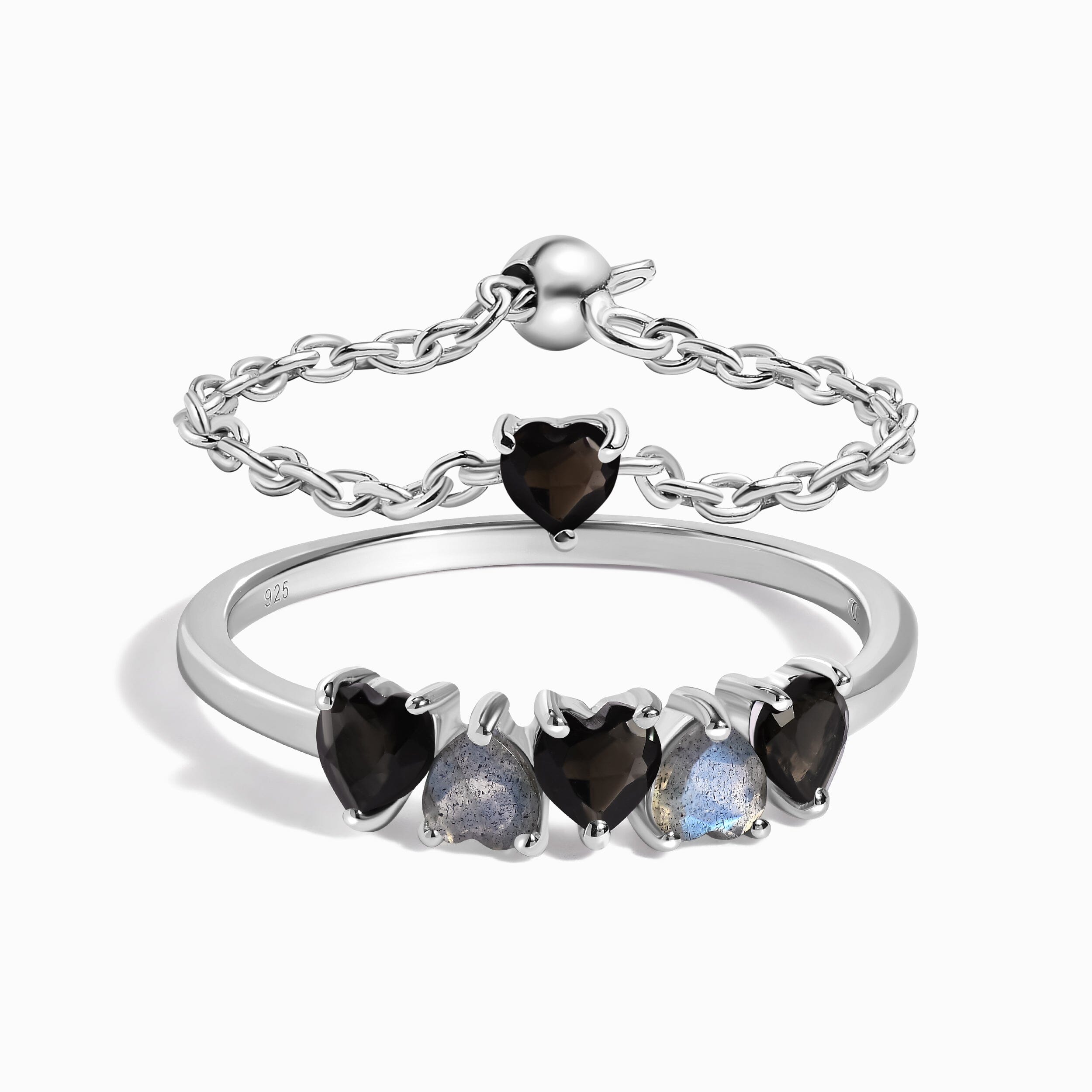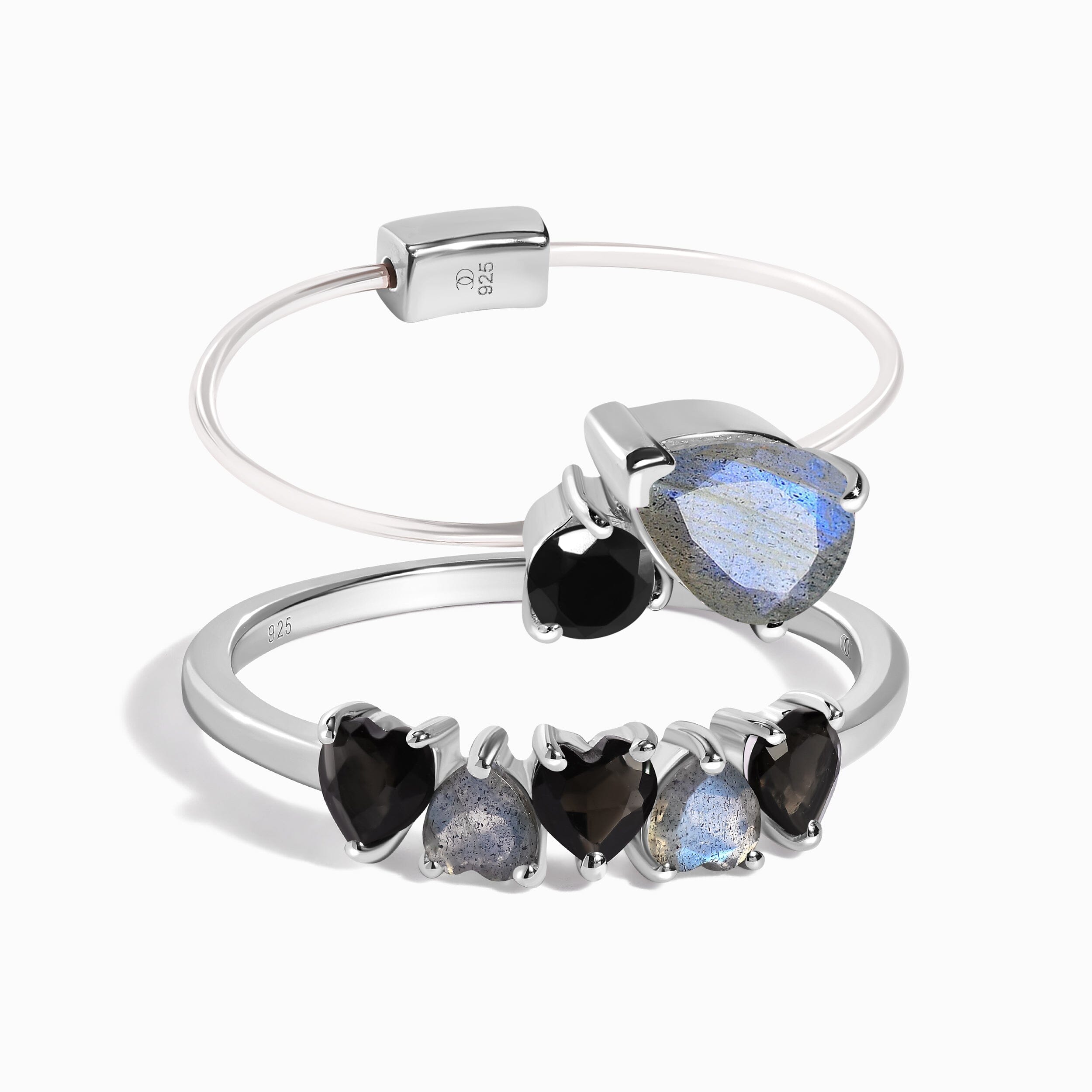 Black Obsidian Labradorite Floating Toi Et Moi & Crush On You Rings