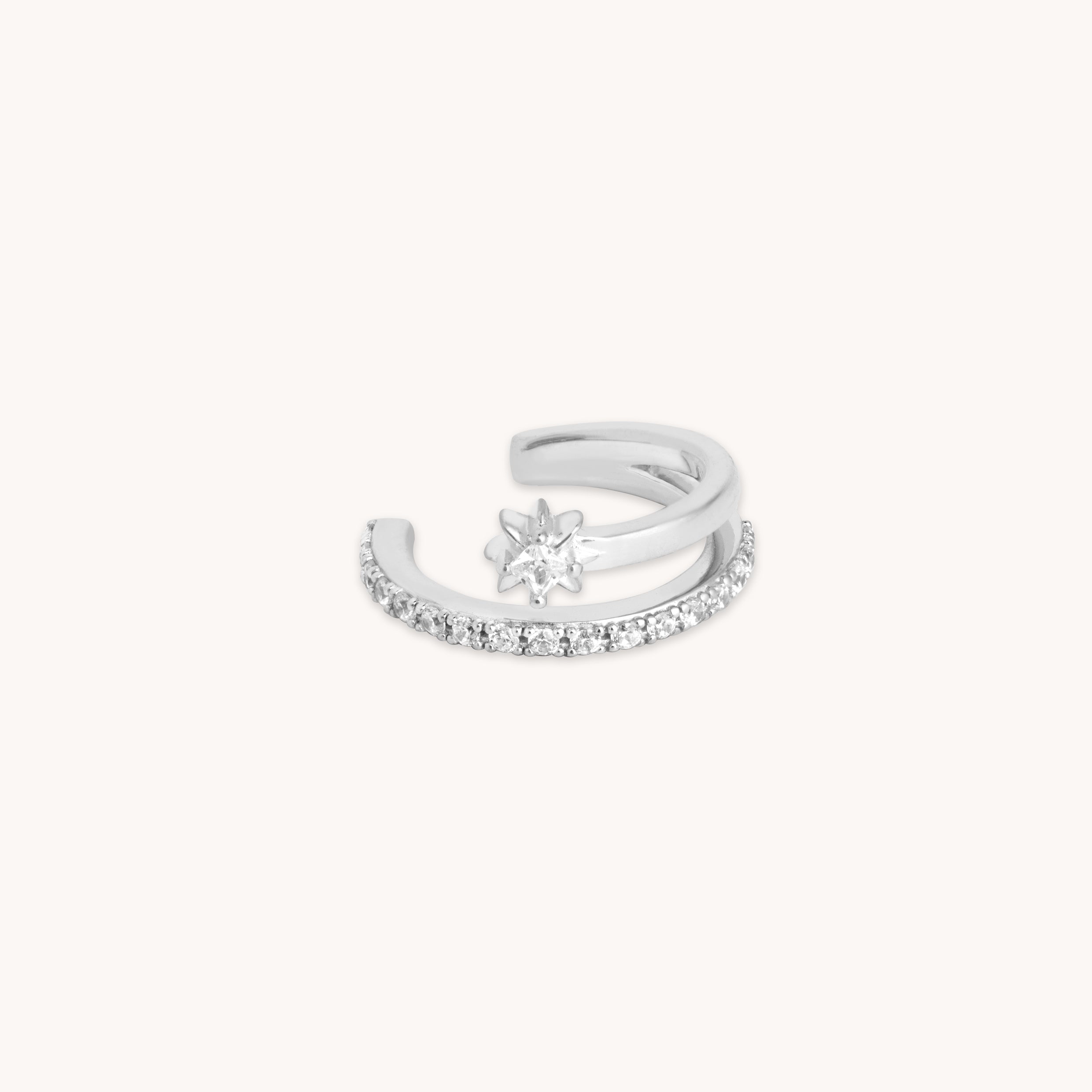 Celestial Crystal Ear Cuff in Silver
