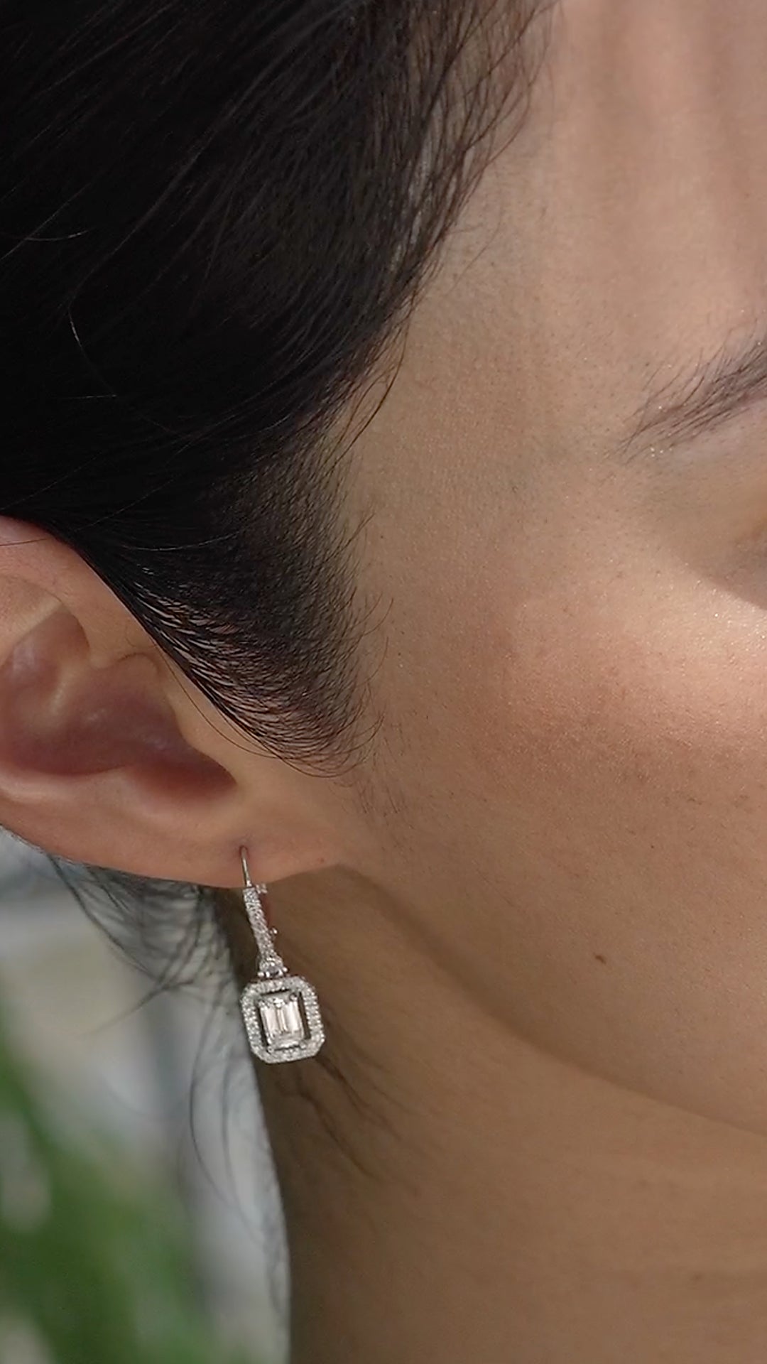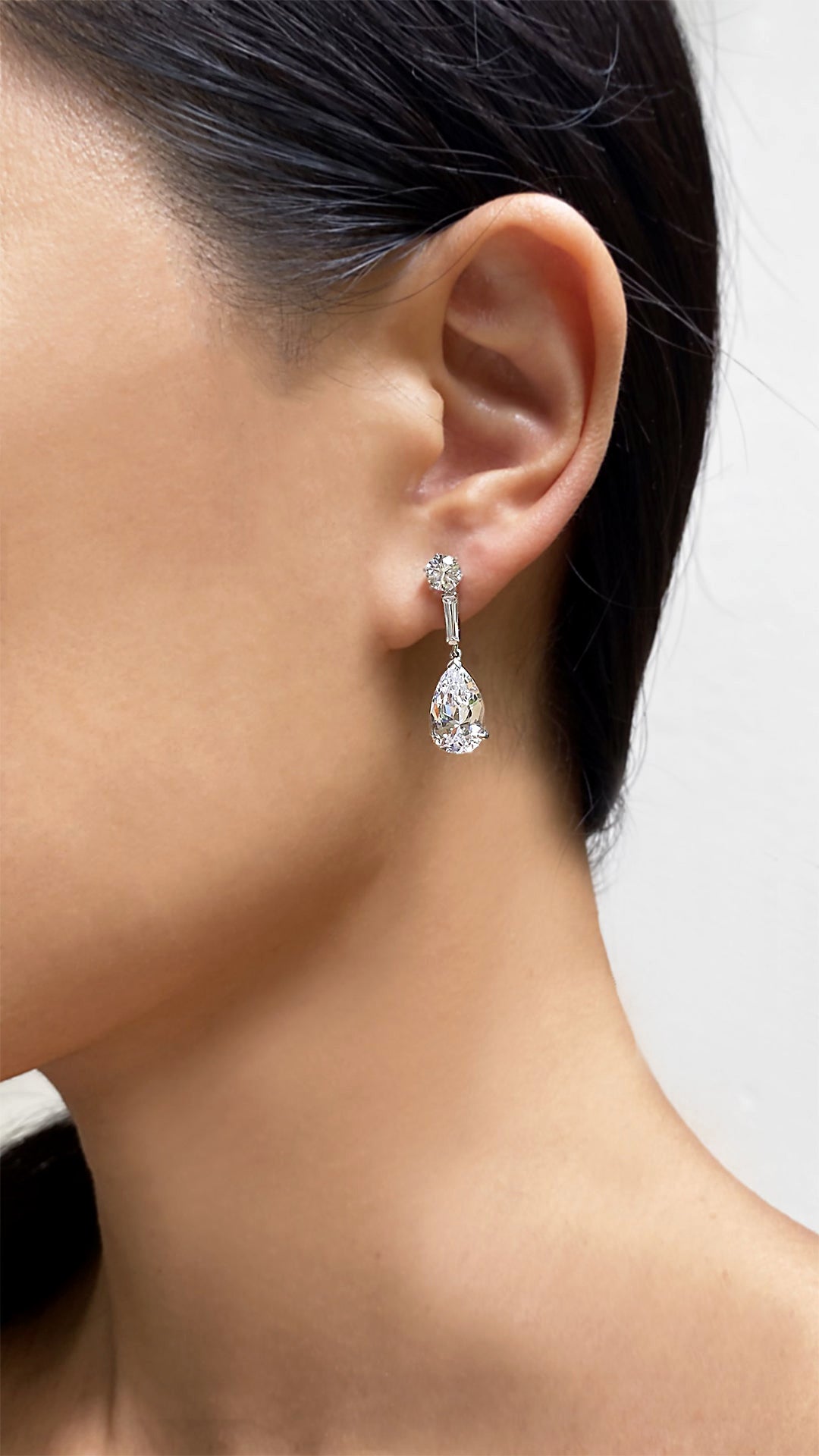Josie Crosscut Pear Drop Earrings White Gold Plated