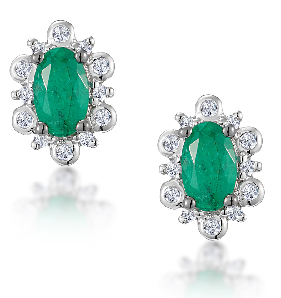 0.50ct Emerald and Diamond Stellato Cluster Earrings in 9K White Gold