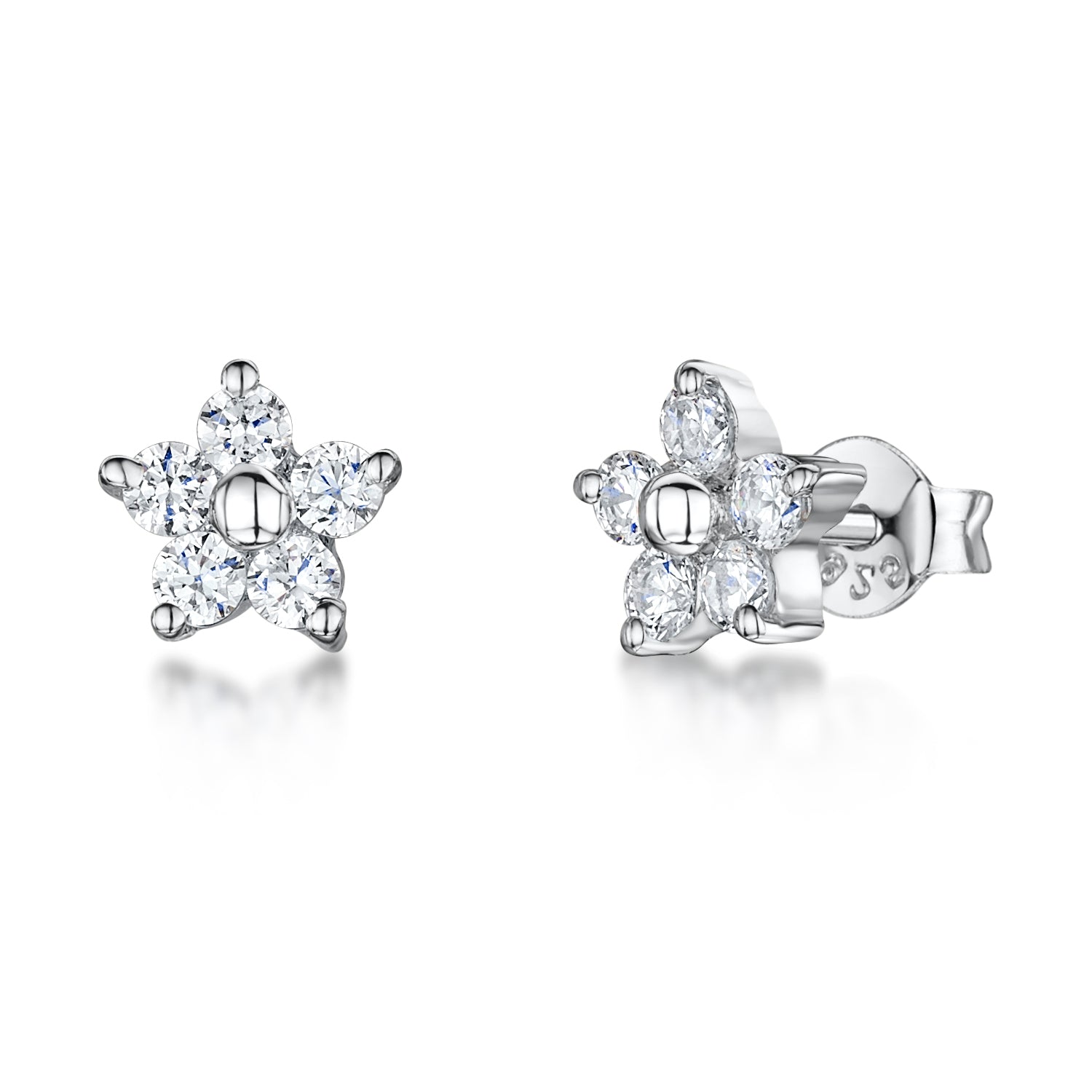 Sterling Silver Simple Flower Shaped Stud Earrings