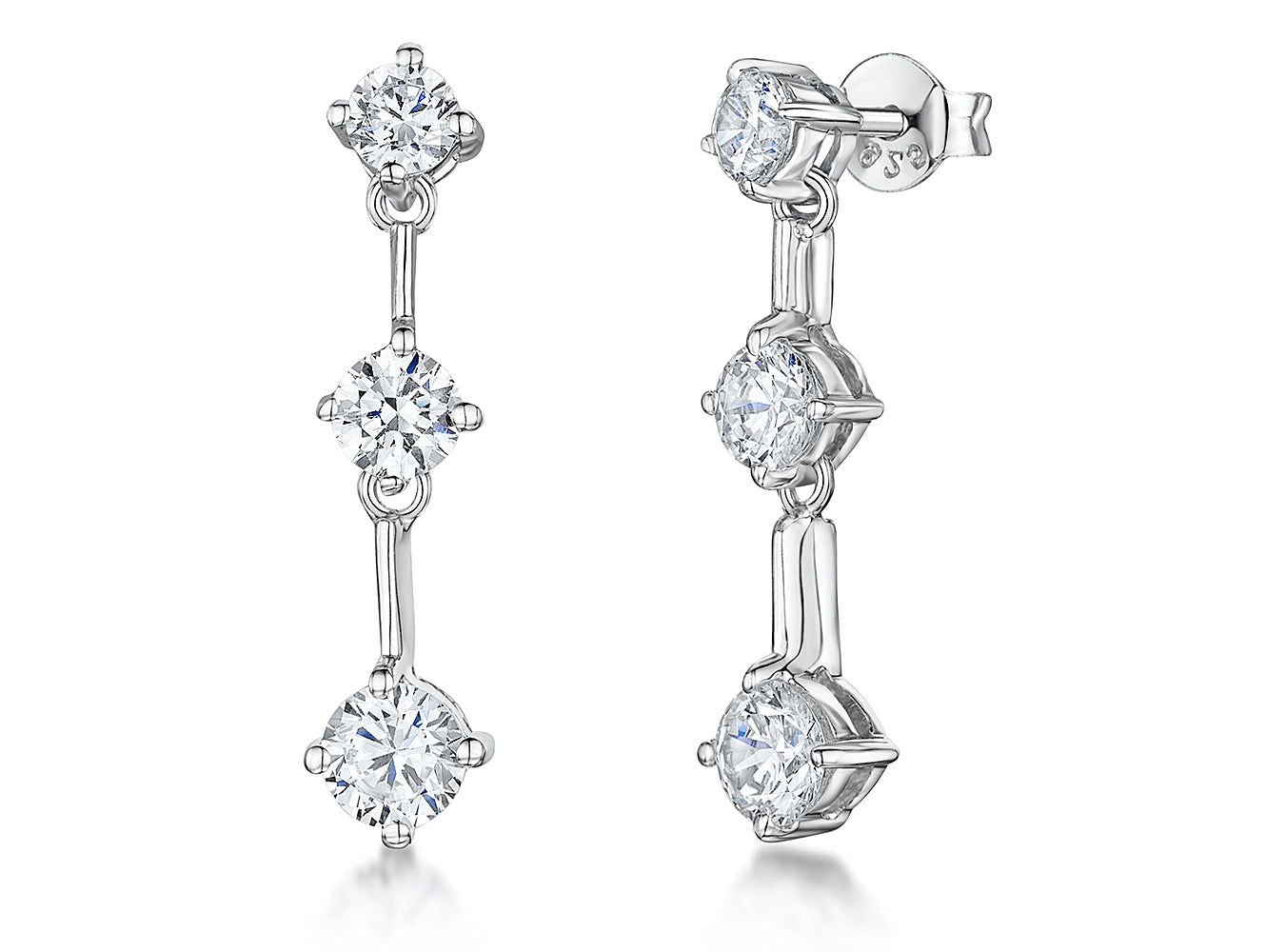 Sterling Silver Three Star North Star Drop Stud Earrings