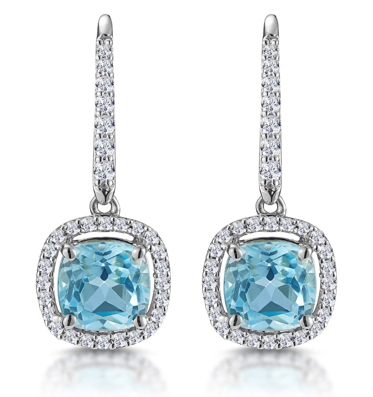 3ct Blue Topaz Lab Diamond Halo Earrings in 9K White Gold – Asteria