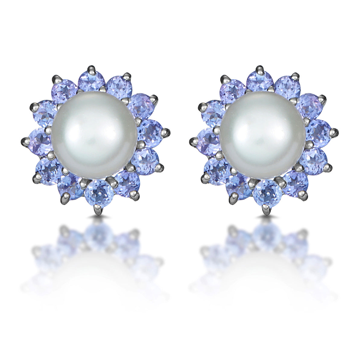 Tanzanite Stud Earrings with Diamonds (18k White Gold)