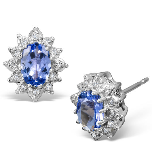 Tanzanite 6 x 4mm And Diamond Cluster 9K White Gold Earrings