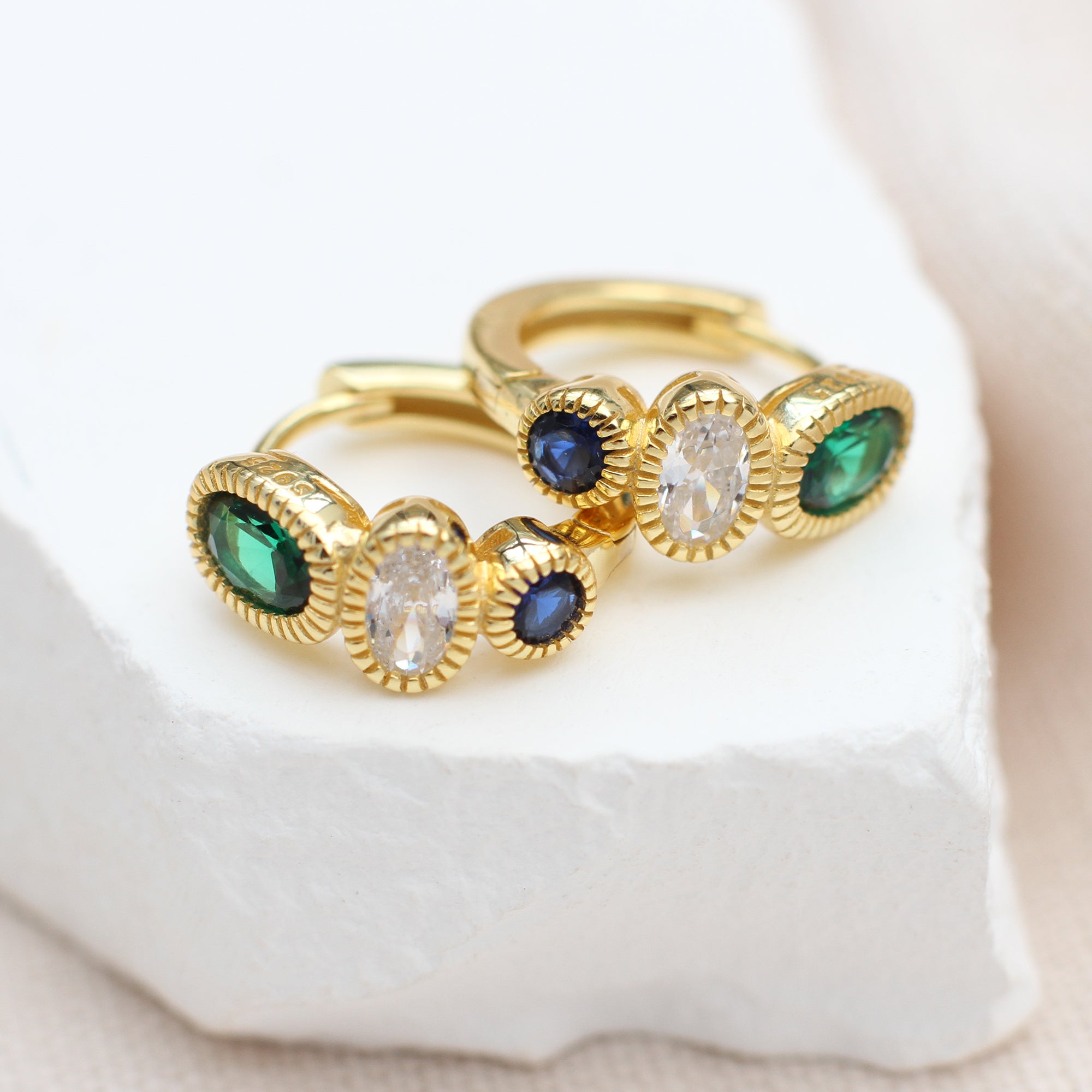 18ct Gold Plated Multi Colour Cz Stone Huggie Hoops