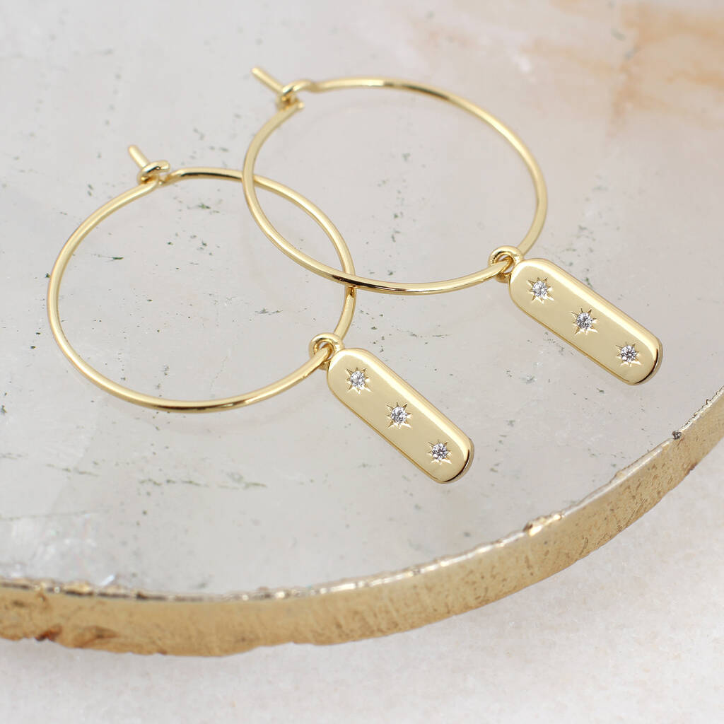 18ct Gold Plated Crystal Tablet Hoop Earrings