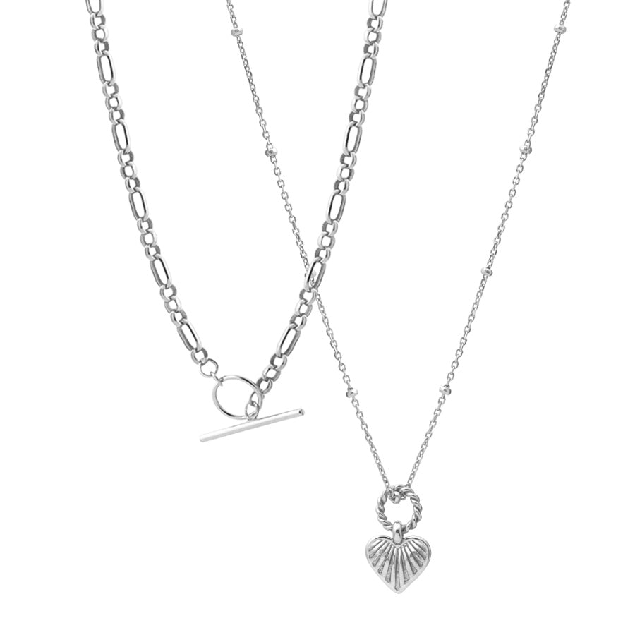 T-Bar Toggle & Dainty Heart Satellite Chain Necklace Layering Set