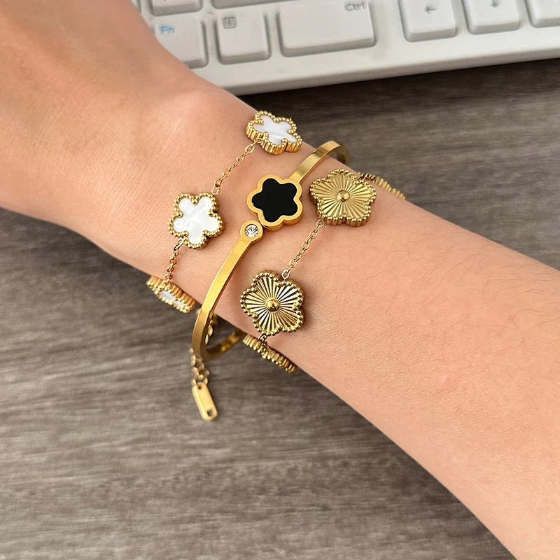 Countess 3 Piece Clover Bracelet Set | Gold