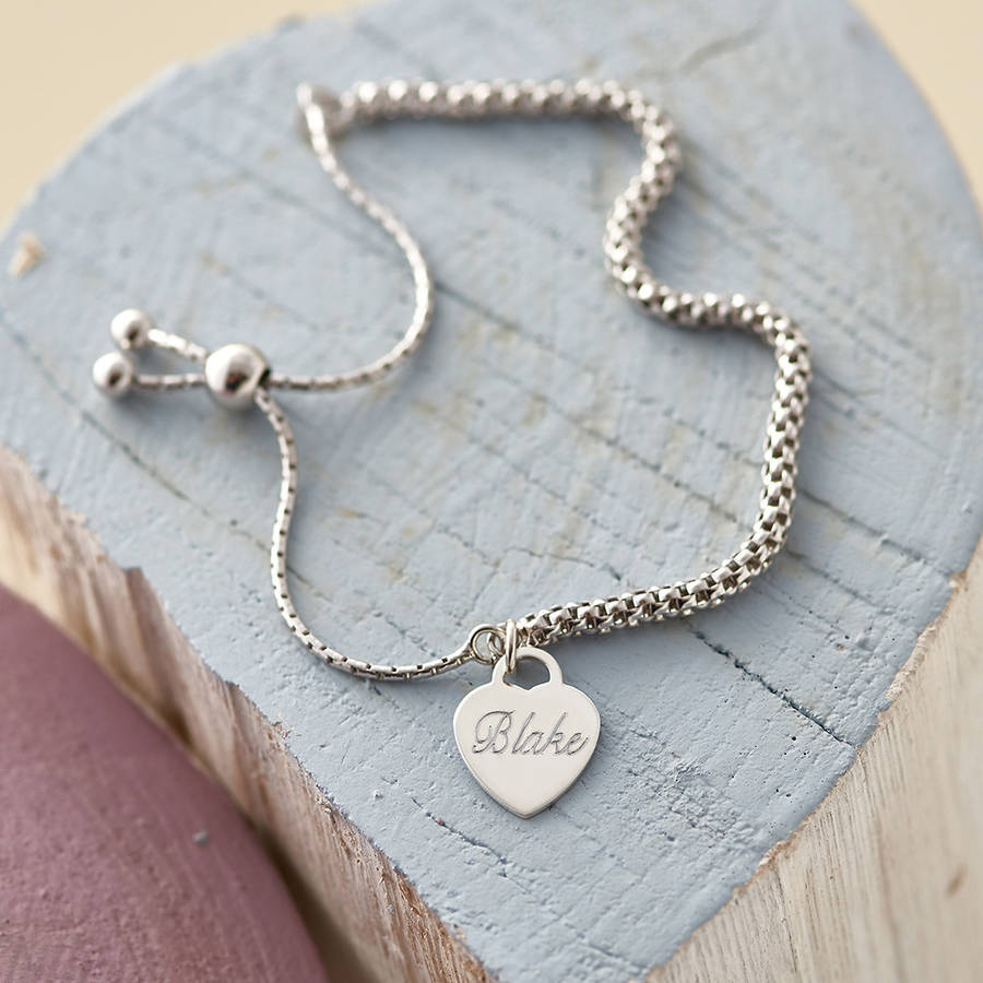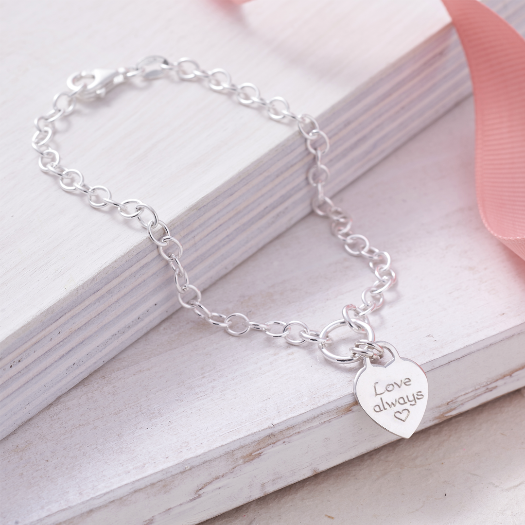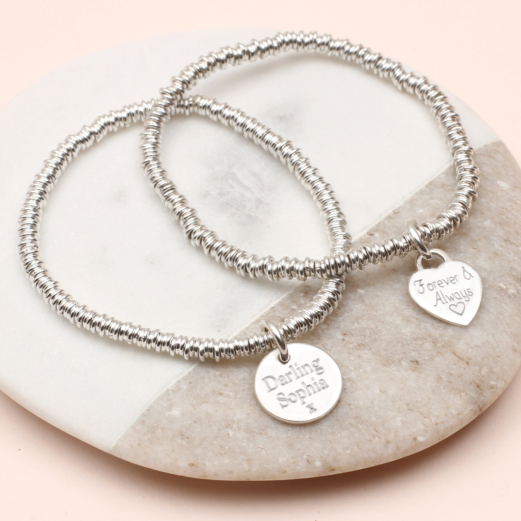 Personalised Sterling Silver Heart or Disc Charm Bracelet