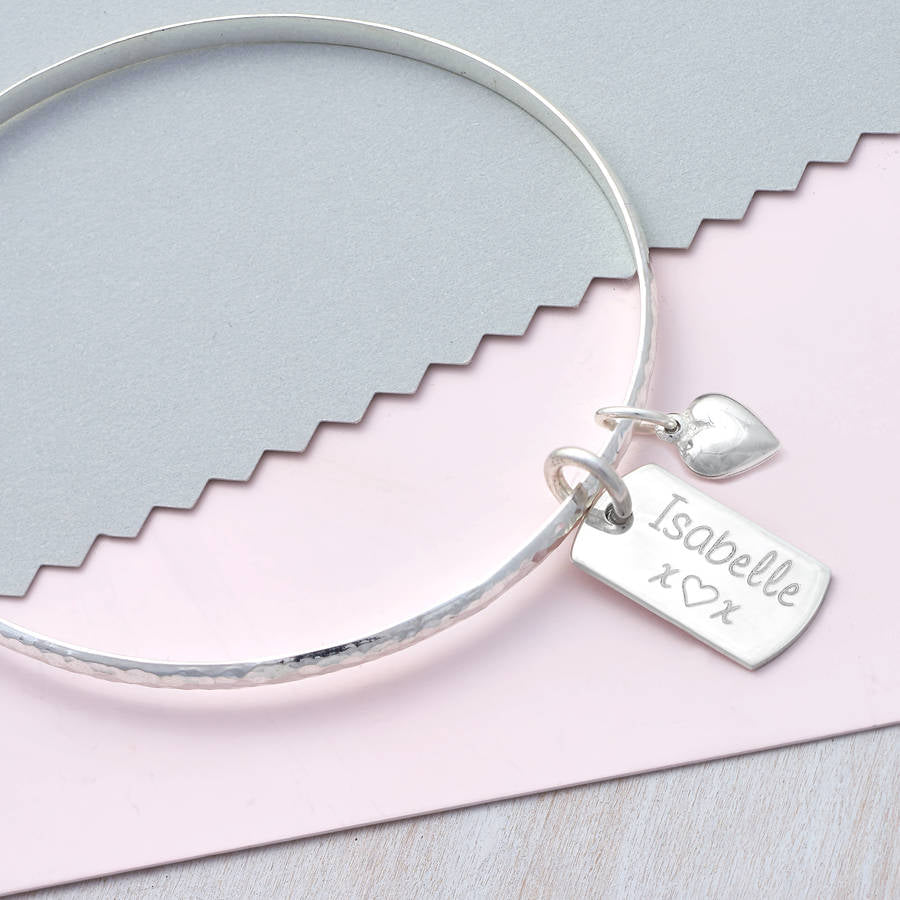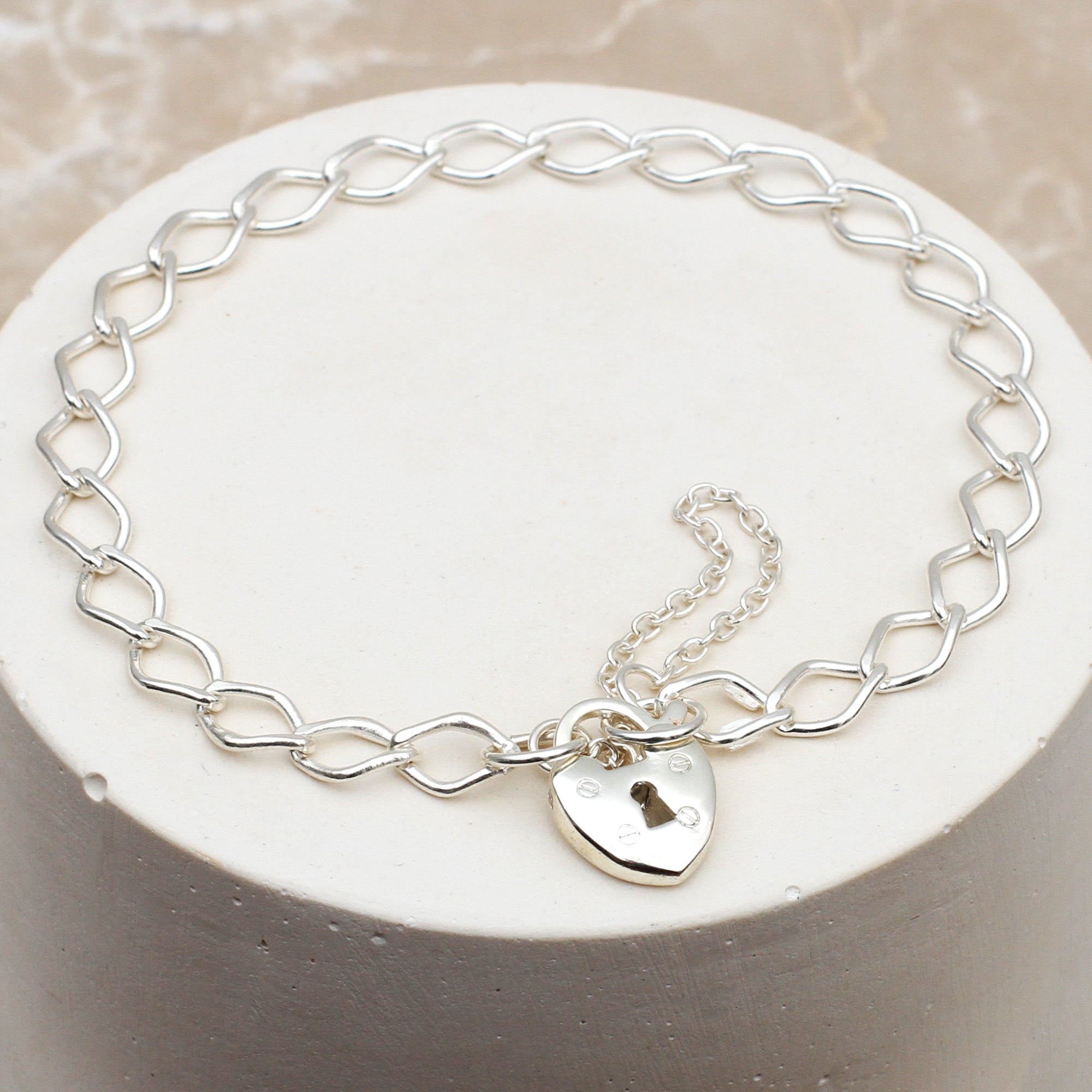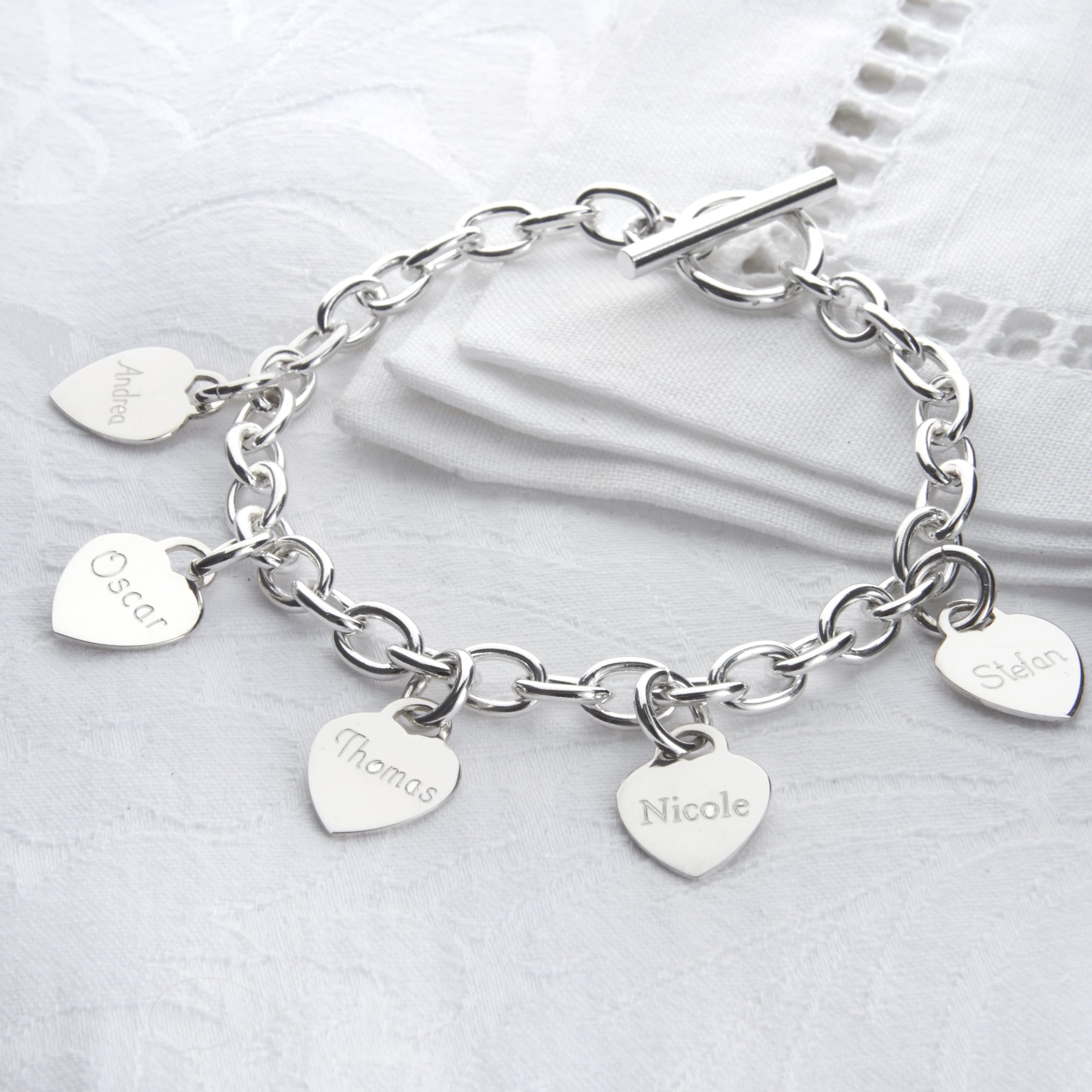 Personalised Sterling Silver Tiny Heart or Disc Charm Bracelet