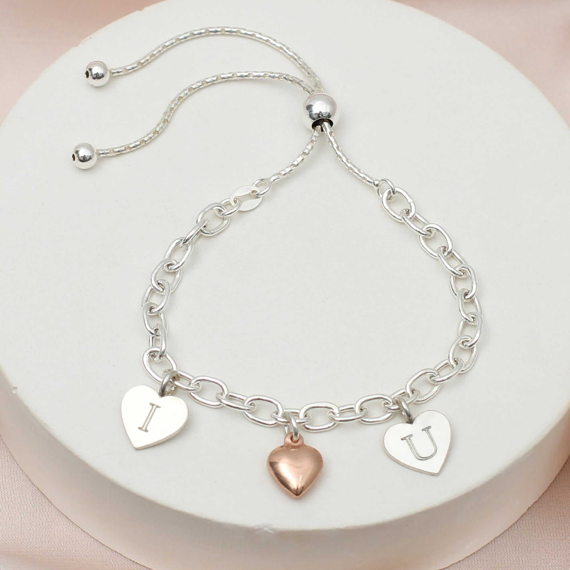 Sterling Silver and Rose Gold ‘I Love You’ Heart Charm Bracelet