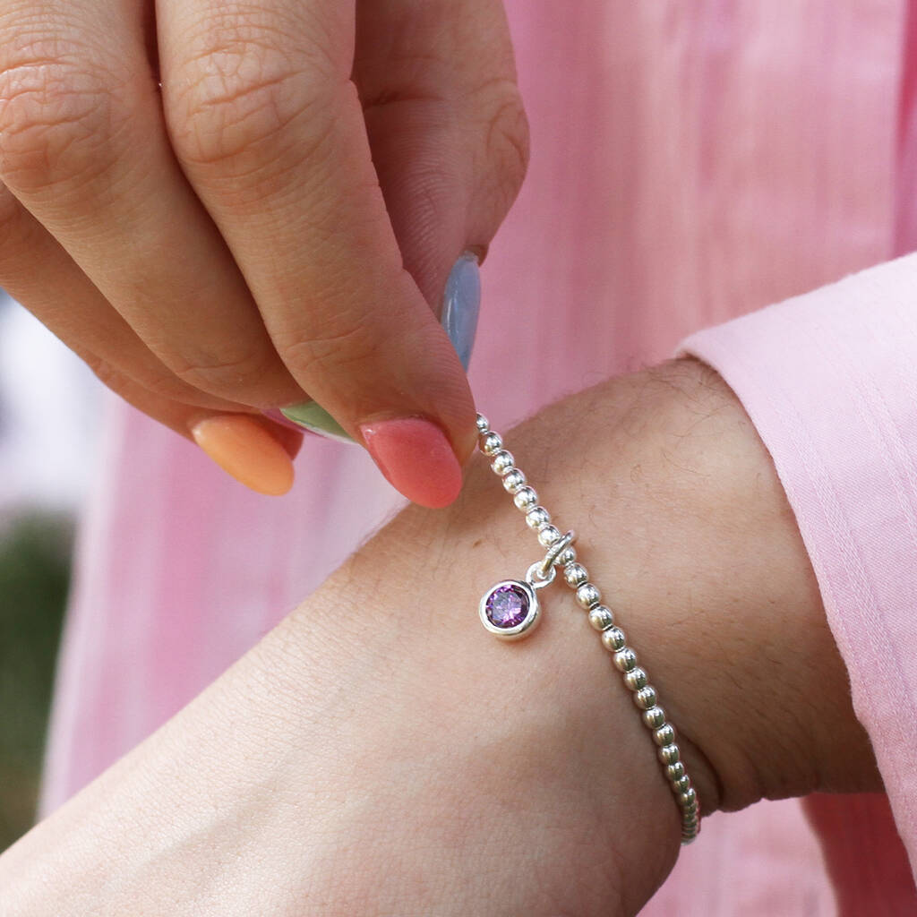 Sterling Silver Personalised Birthstone Ball Bracelet