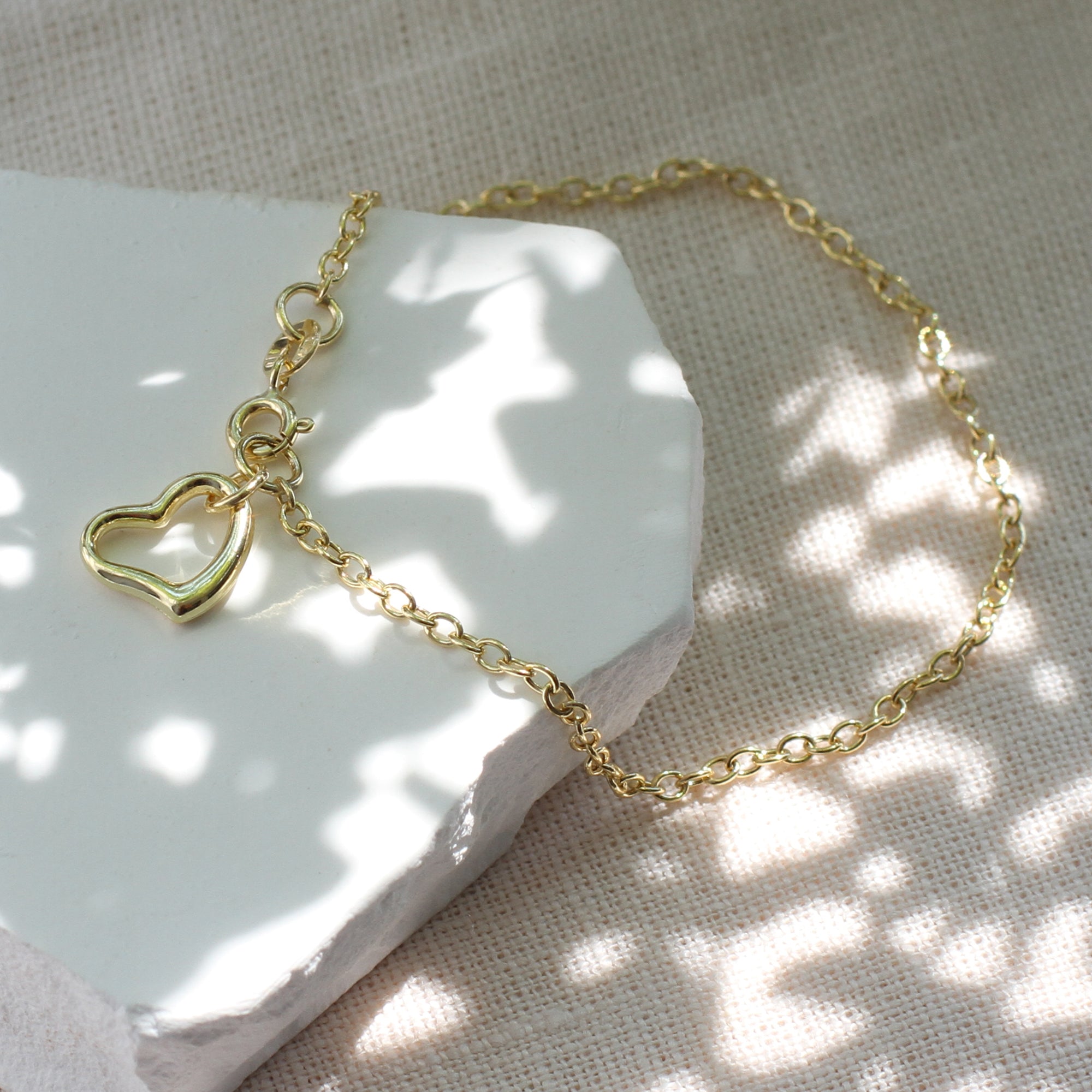 9ct Yellow Gold Heart Charm Bracelet