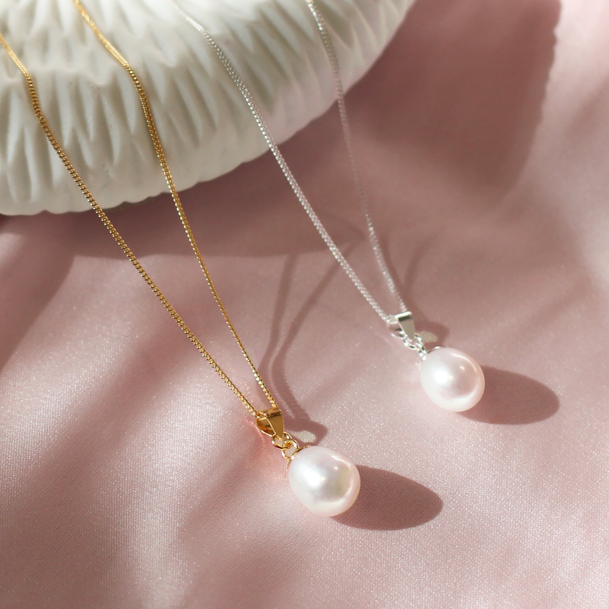 Personalised Gold Plated or Sterling Silver Pearl Necklace