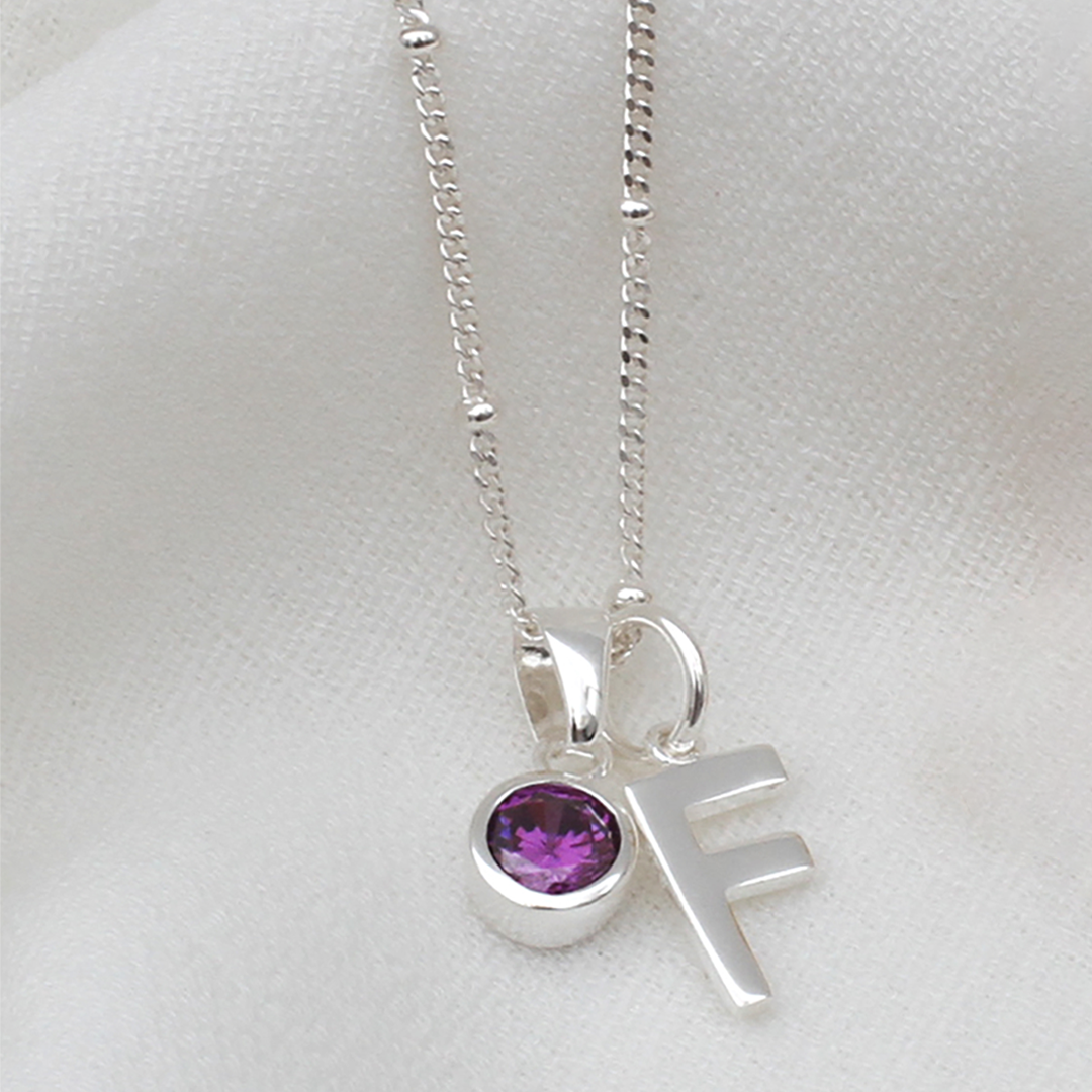 Sterling Silver Initial & Birthstone Charm Necklace