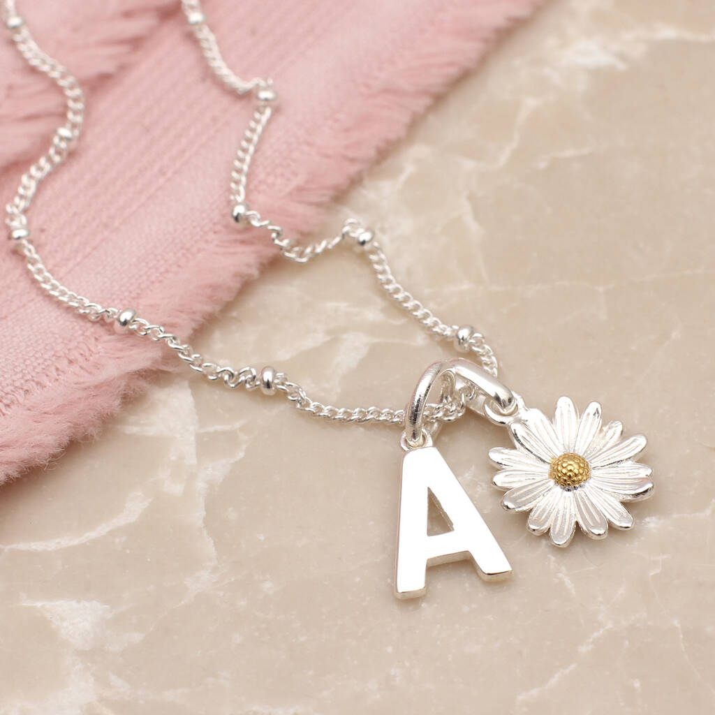 Sterling Silver Daisy & Initial Necklace