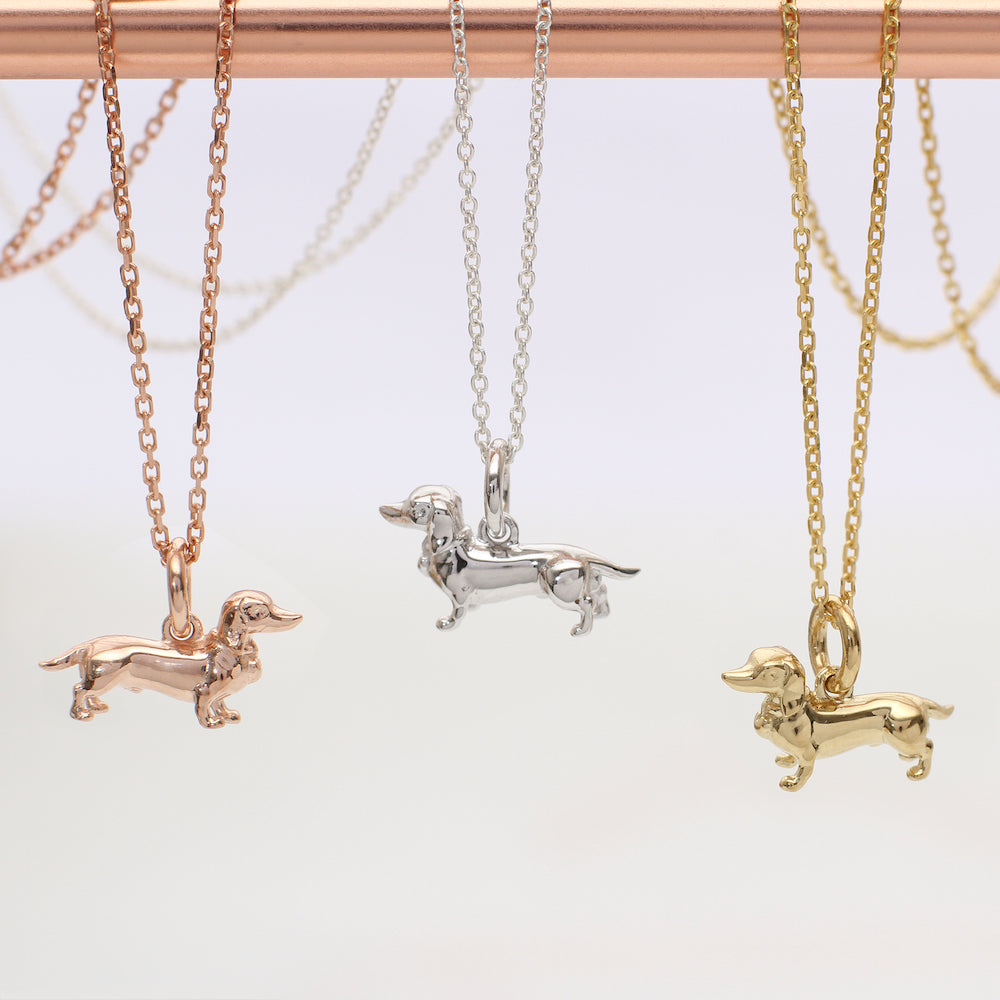 Sterling Silver or 18ct Gold Plated Tiny Dachshund Dog Necklace