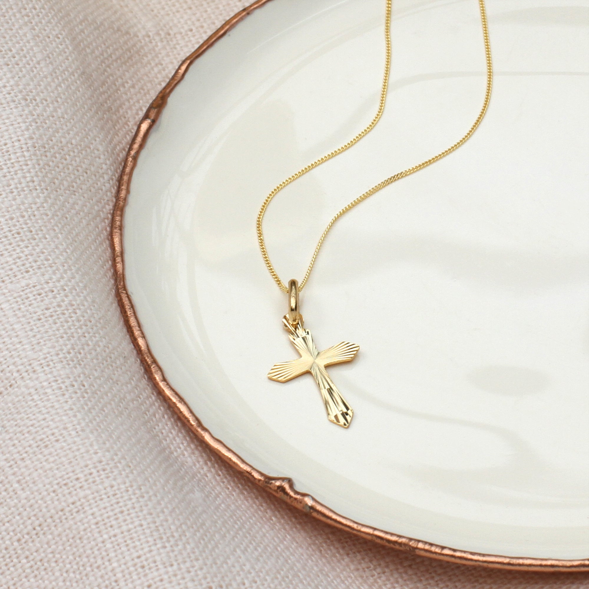 9ct Yellow Gold Diamond Cut Cross Pendant Necklace