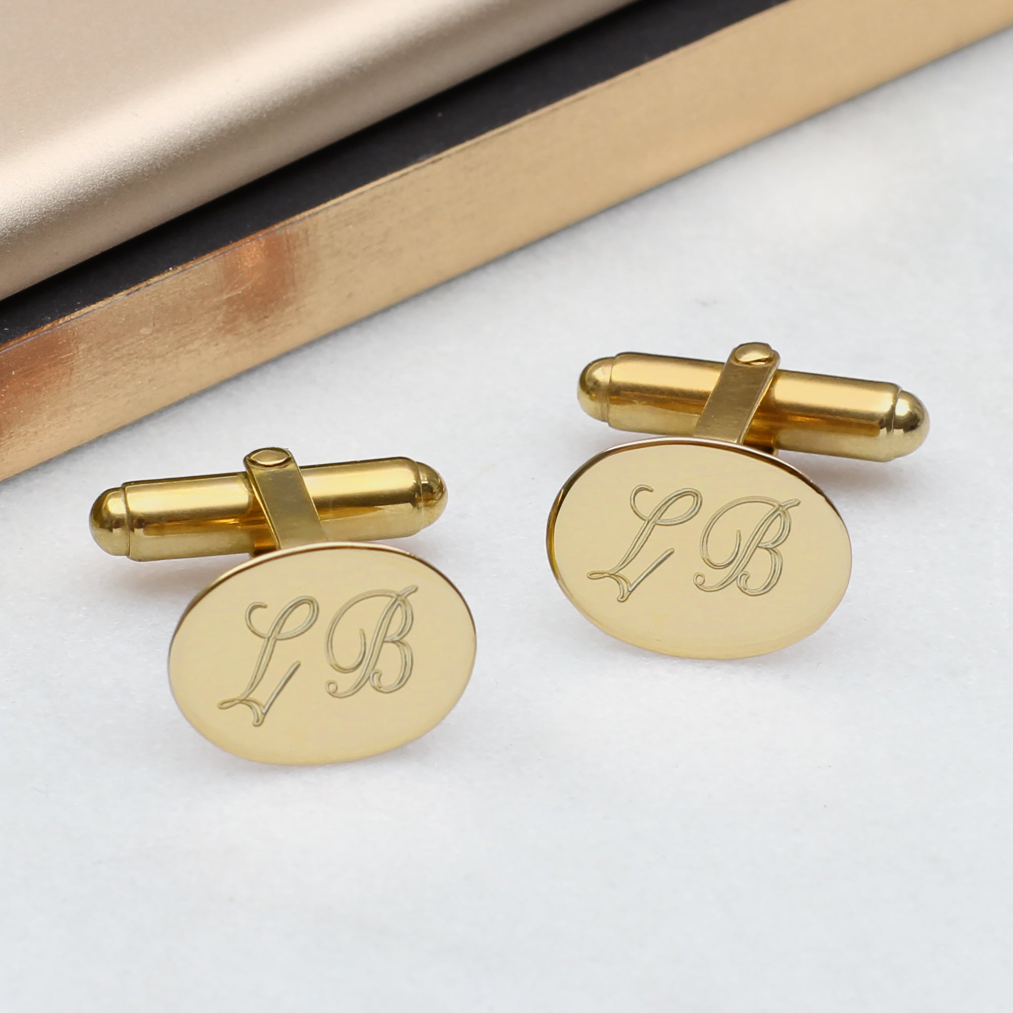 Personalised 18ct Yellow Gold Vermeil Plated Oval Cufflinks