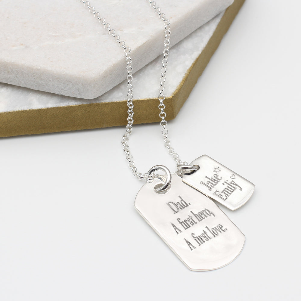 Men’s Polished Sterling Silver Dog Tag Necklace