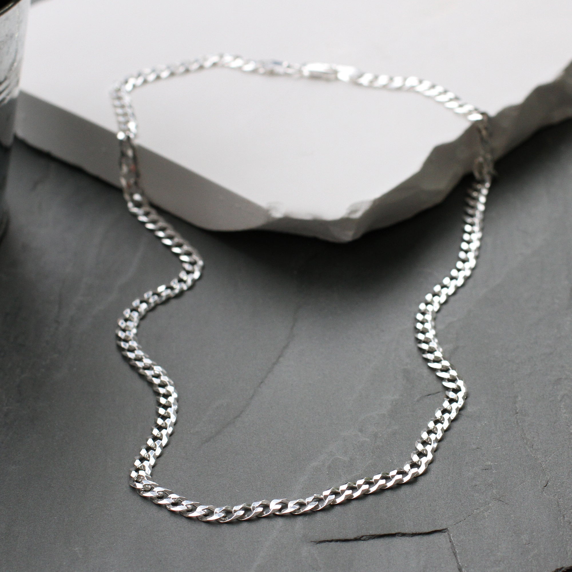 Men’s Sterling Silver Flat Curb Chain Necklace