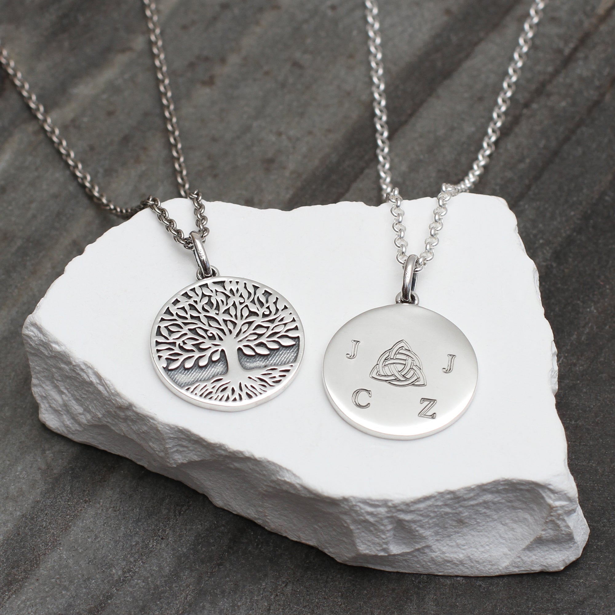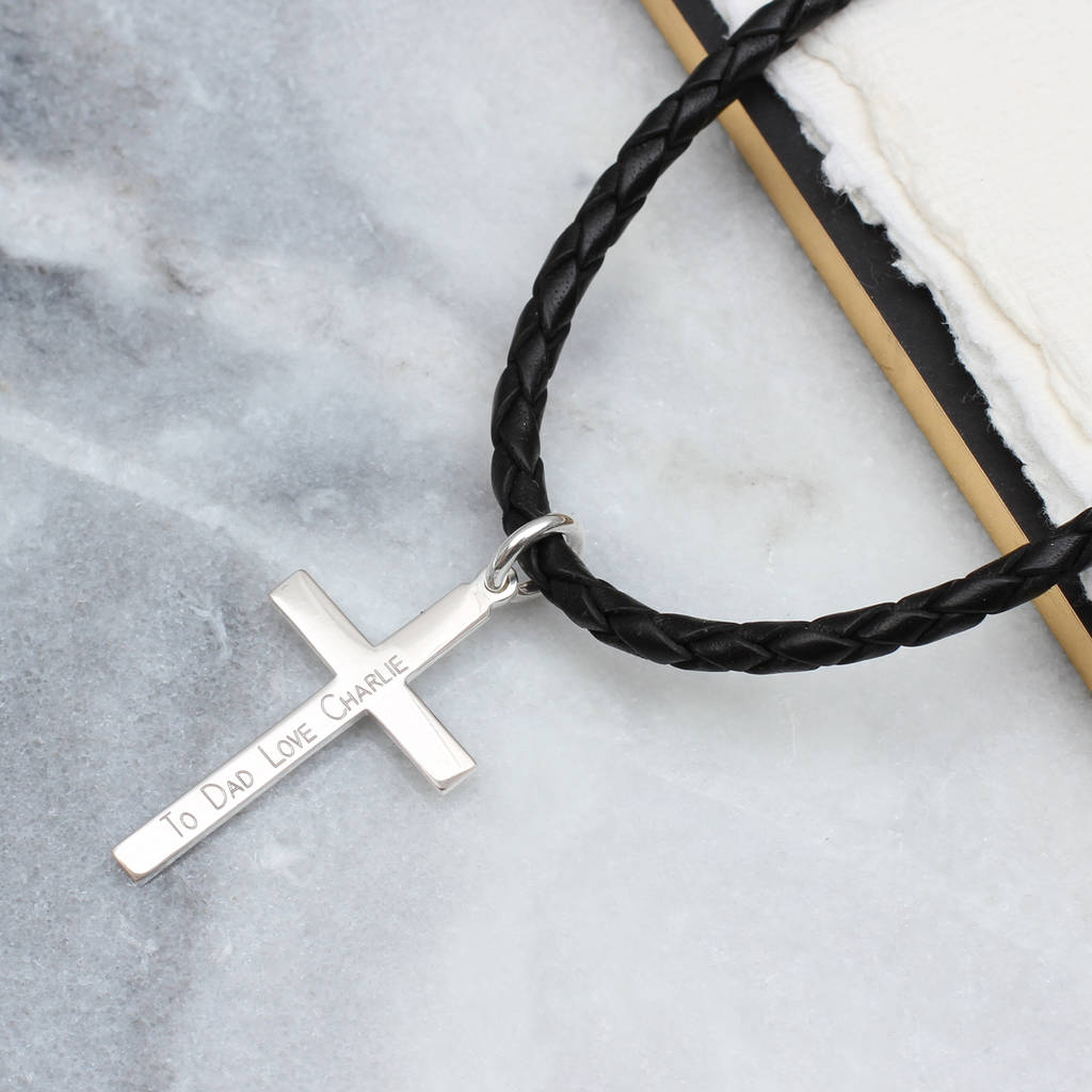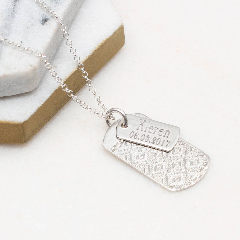 Woven Leather And Brushed Sterling Silver Dog Tag Necklace