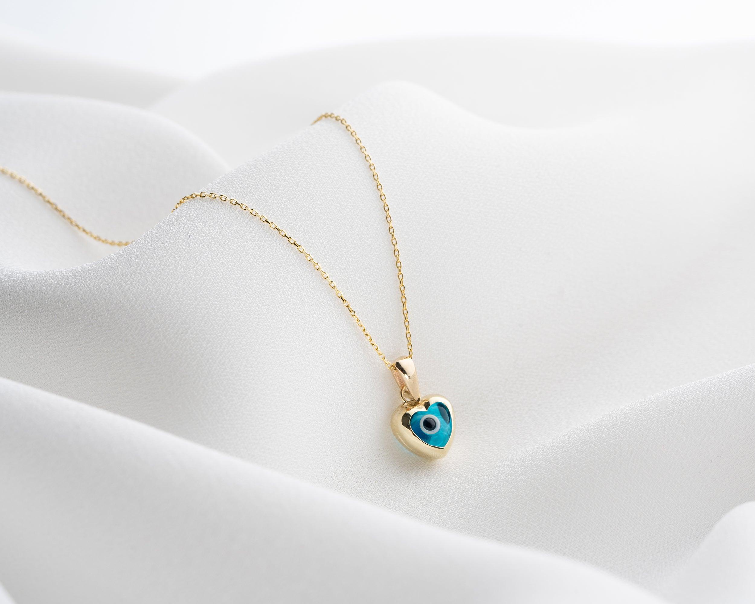 14K Solid Gold Evil Eye Protection Necklace
