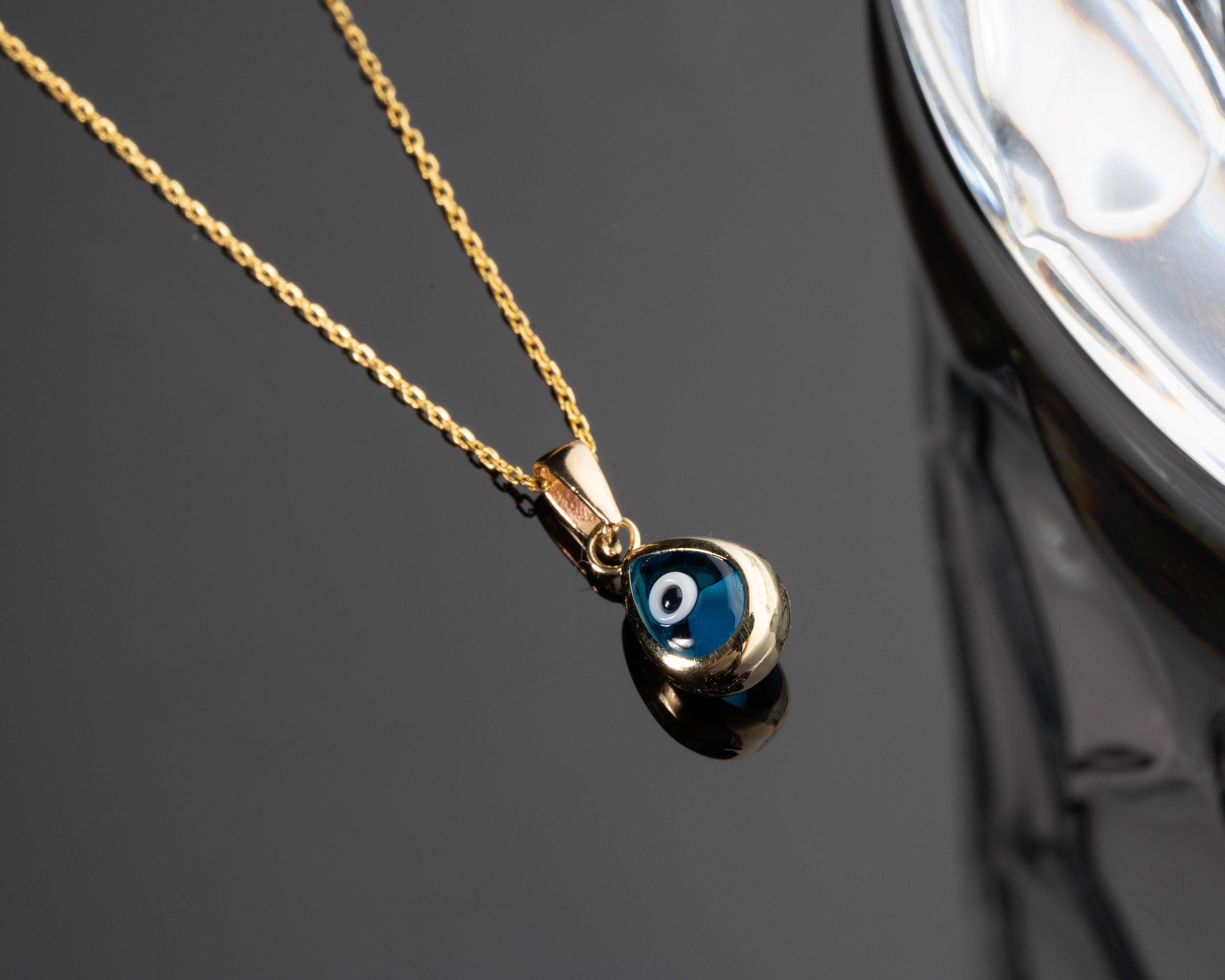 14K Solid Gold Drop Shaped Evil Eye Necklaces