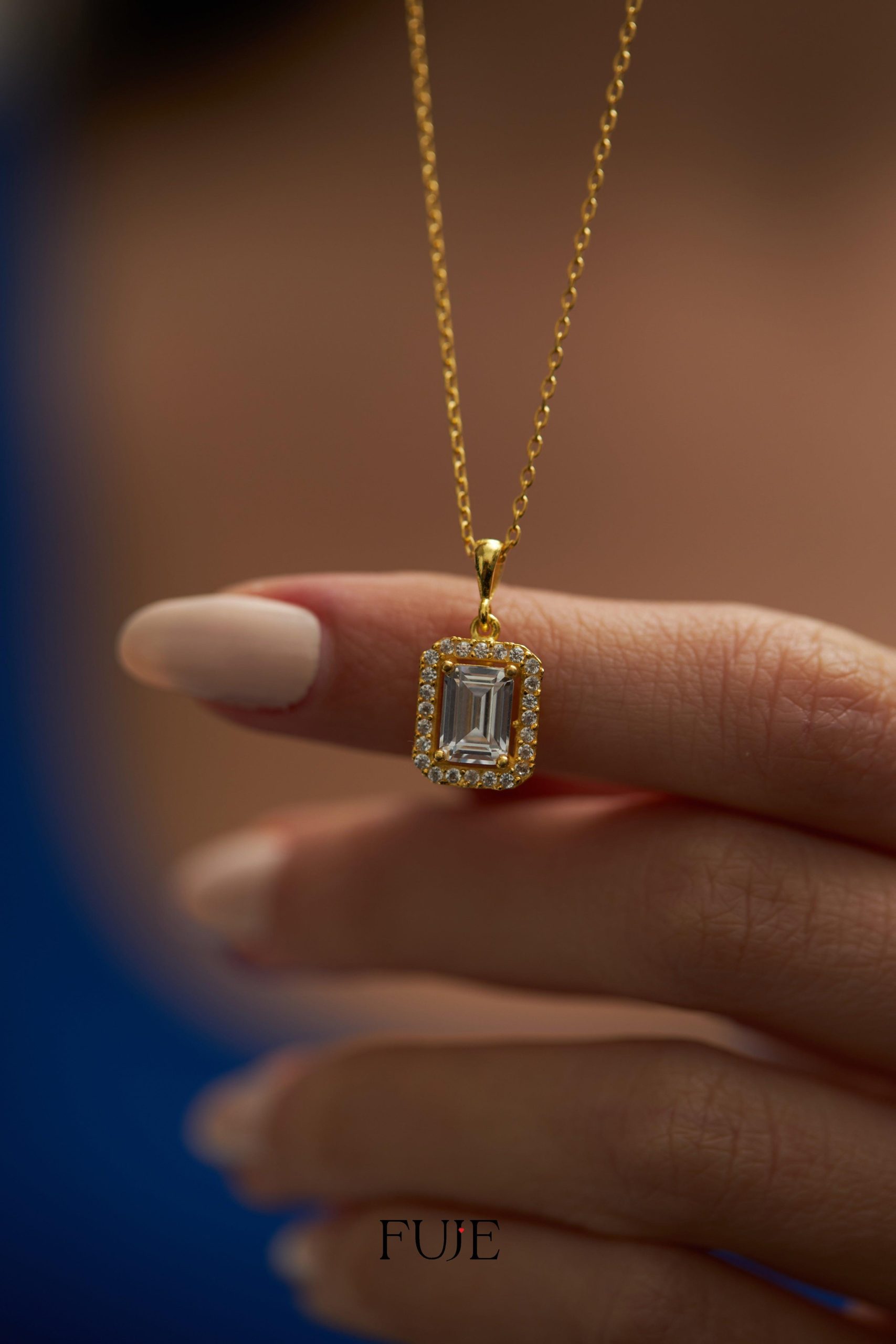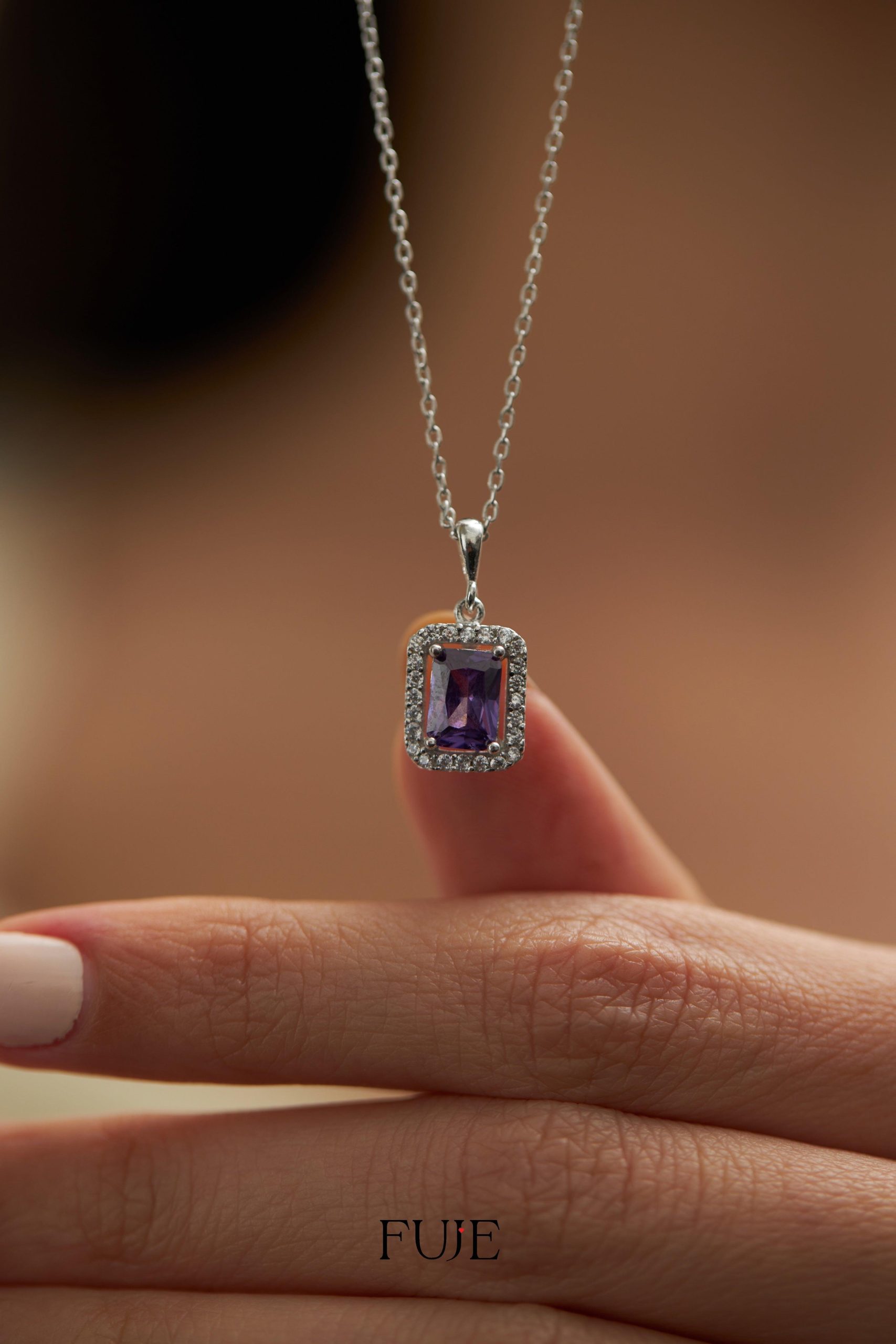 Baguette Necklace, Emerald, Sapphire, Ruby, Amethyst,Topaz, Peridot, Citrine, Onyx, 925K Silver