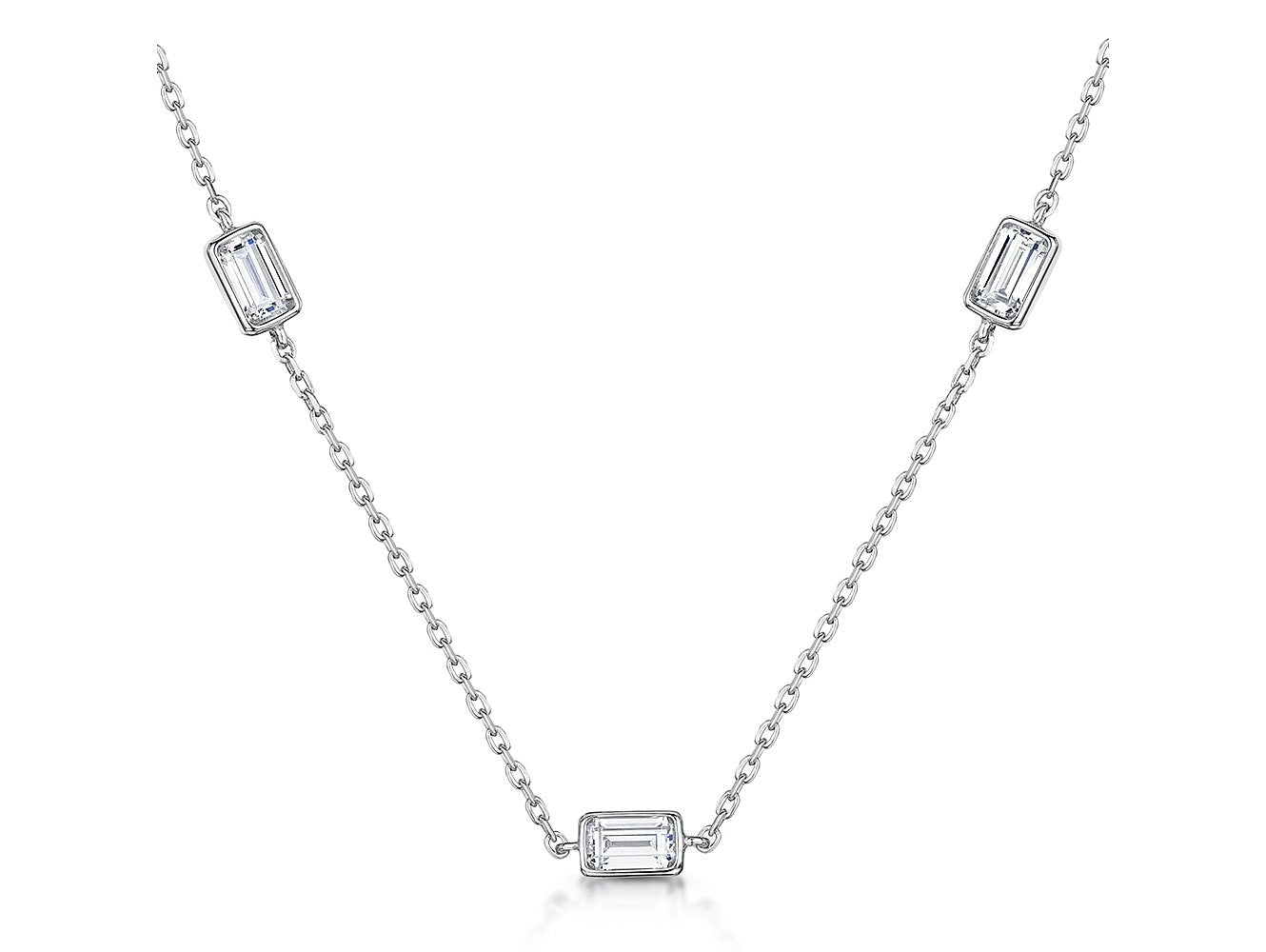 Sterling Silver Necklace Set With Three Cubic Zirconia Stones