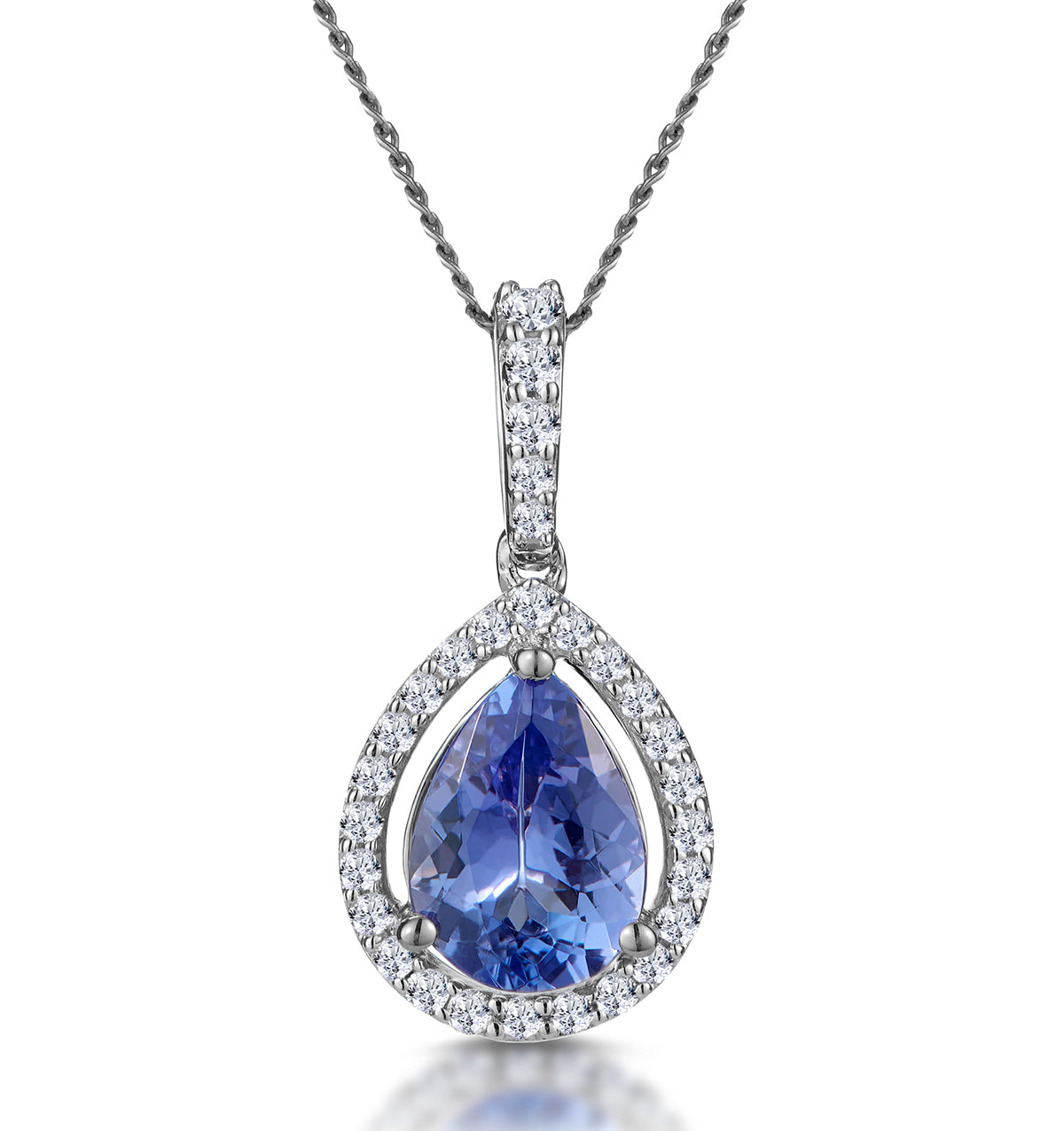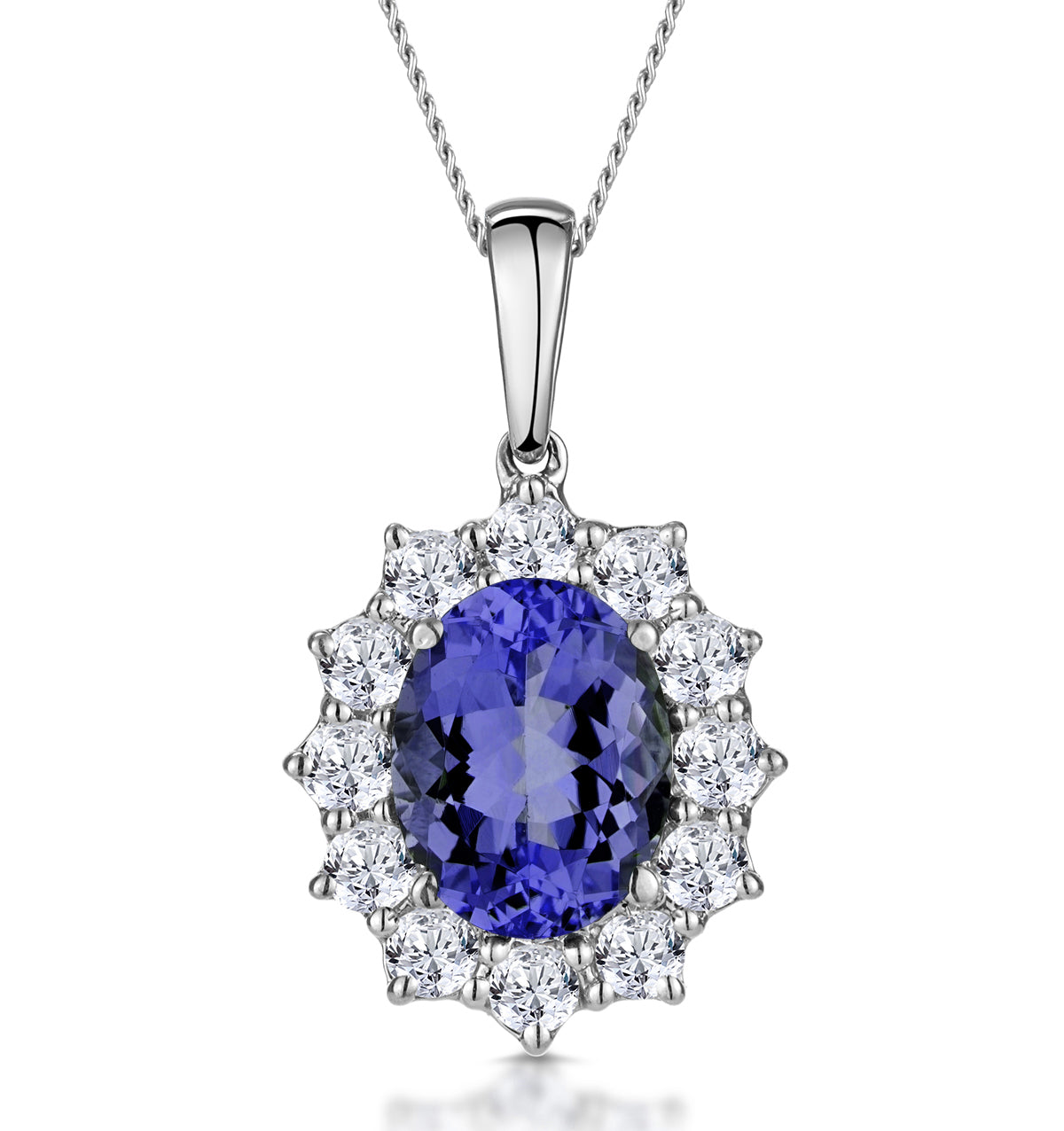 Tanzanite 7 x 5mm And Diamond 18K White Gold Pendant Necklace