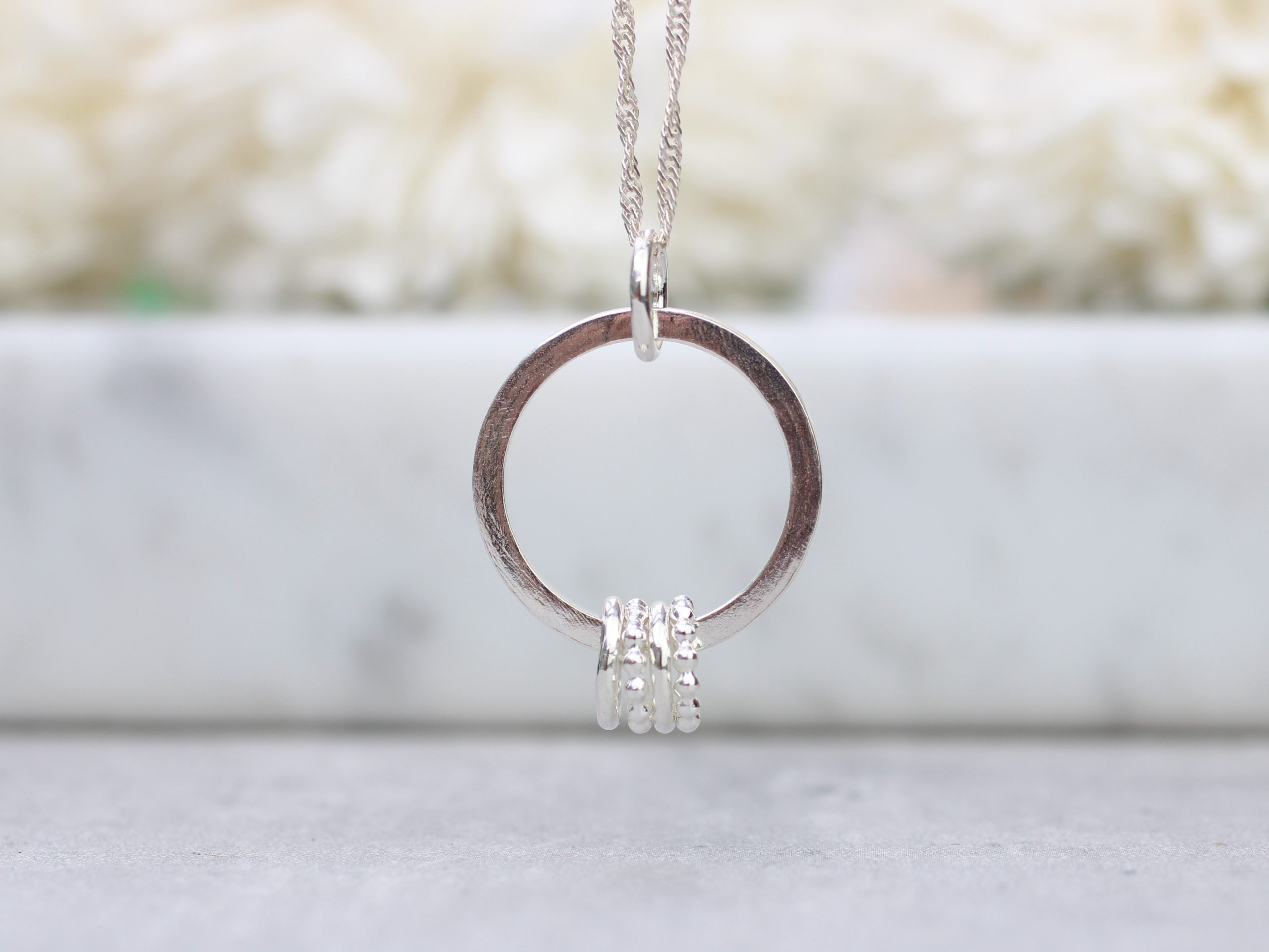 40th birthday necklace with 4 rings.