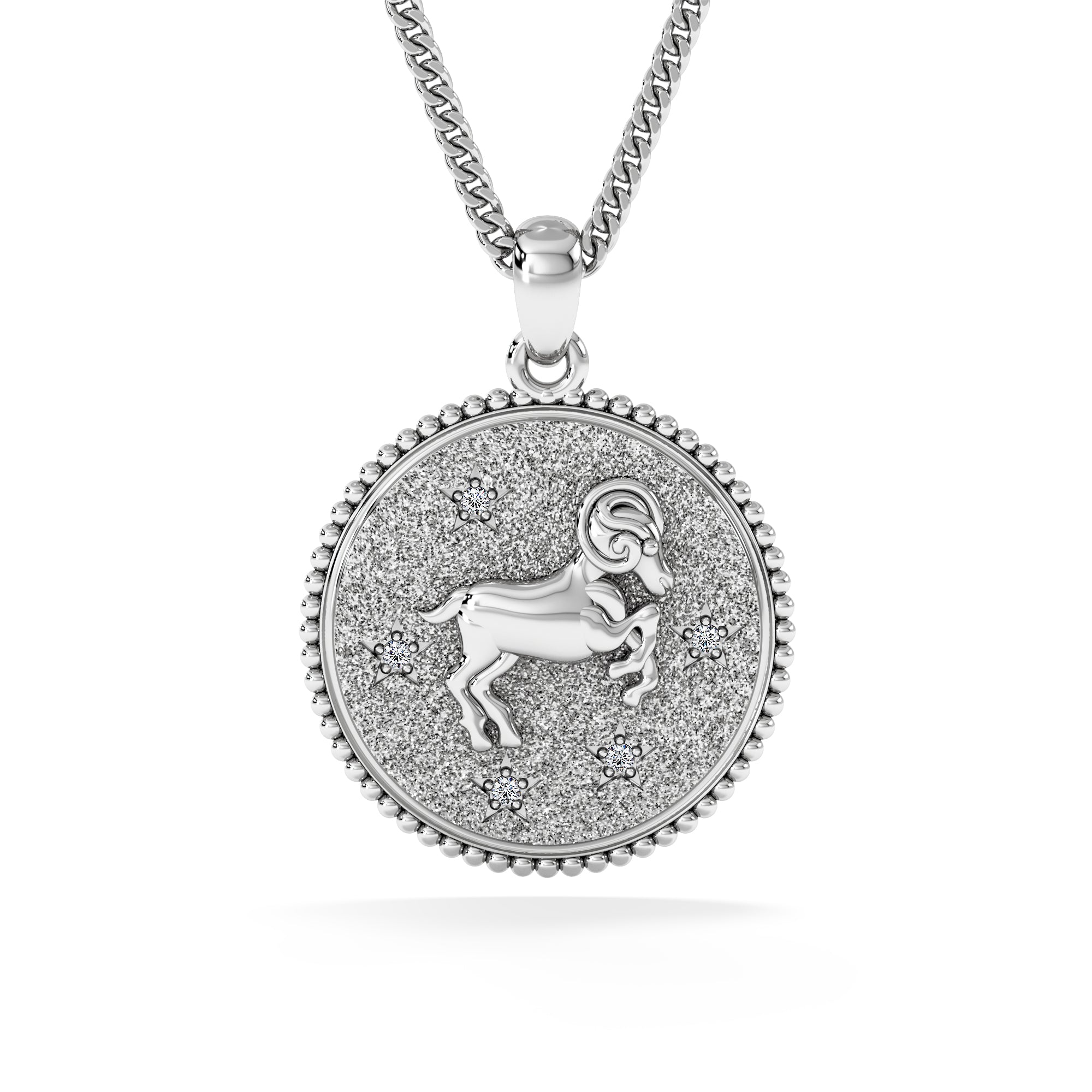 Zodiac Aries Necklace Medallion Lab Grown 0.02ct in 925 Silver