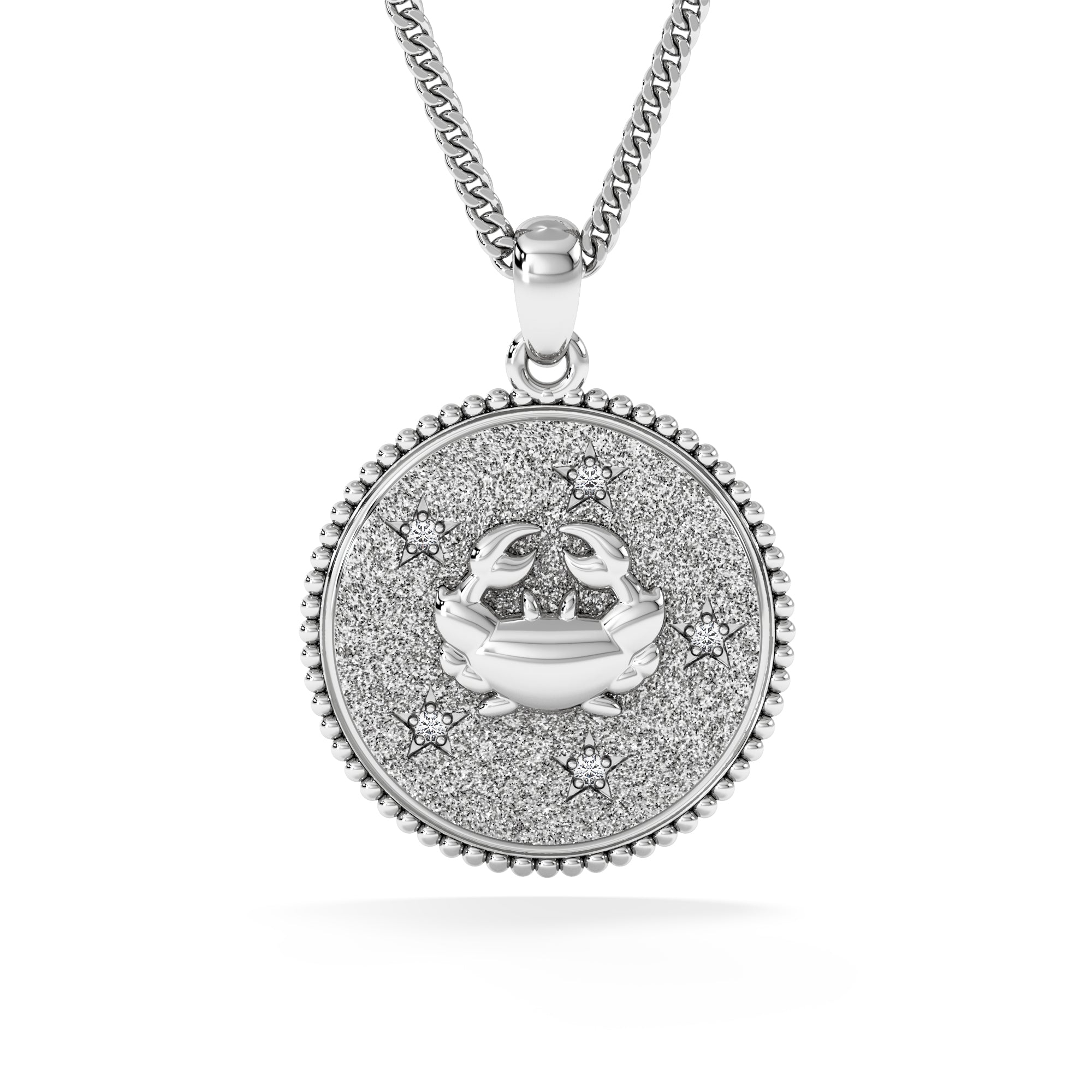 Zodiac Cancer Necklace Medallion Lab Grown 0.02ct in 925 Silver