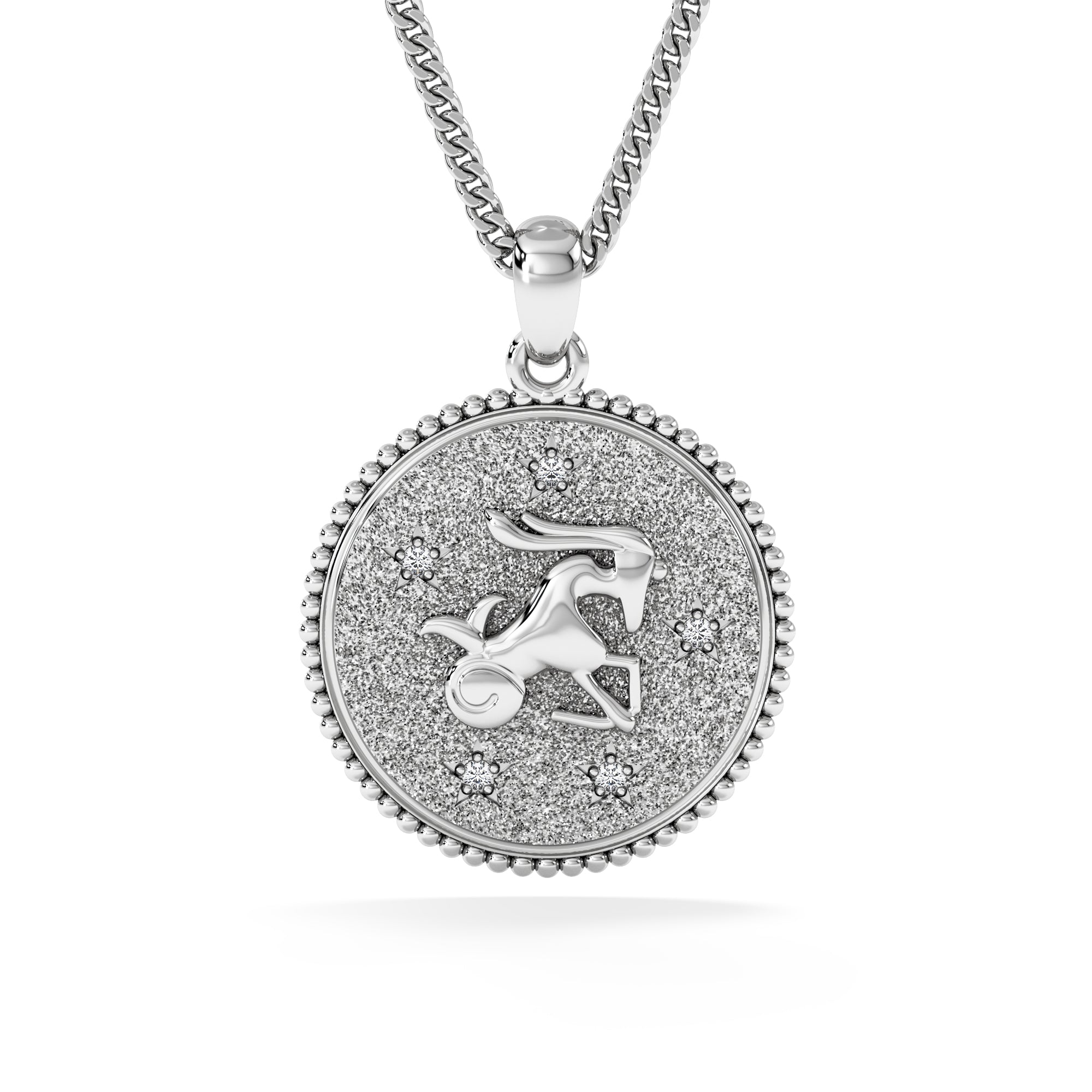 Zodiac Capricorn Necklace Medallion Lab Grown 0.02ct in 925 Silver