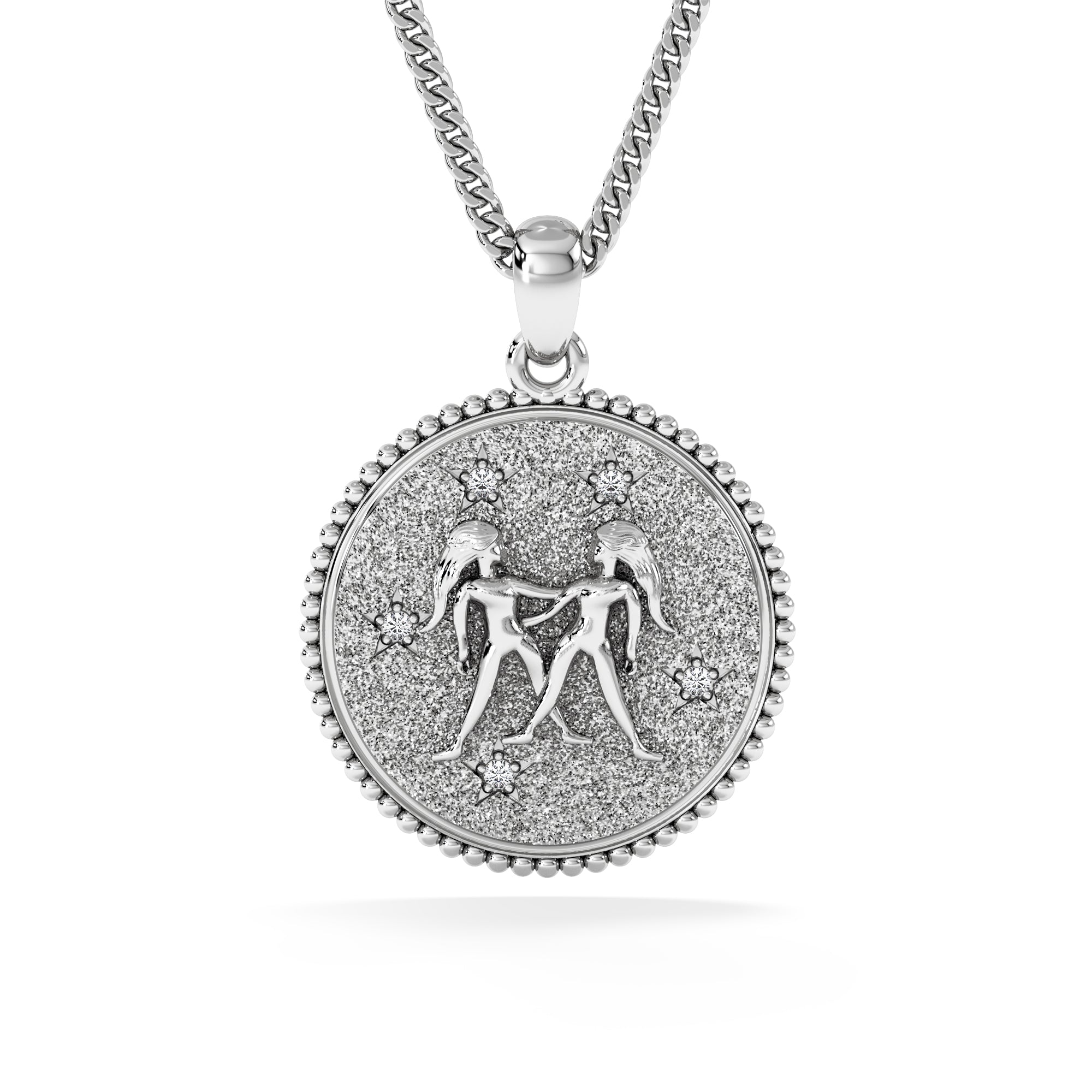 Zodiac Gemini Necklace Medallion Lab Grown 0.02ct in 925 Silver