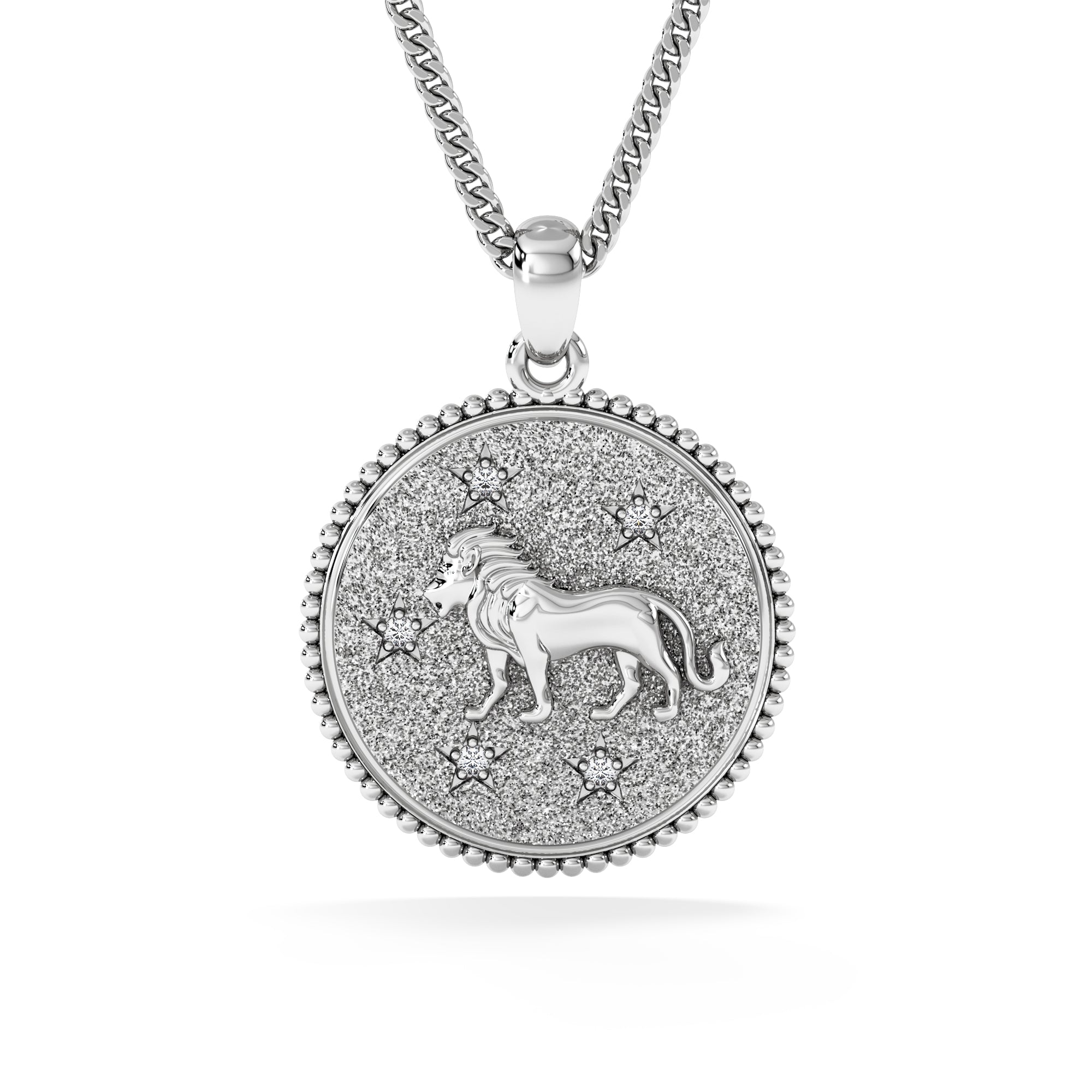 Zodiac Leo Necklace Medallion Lab Grown 0.02ct in 925 Silver