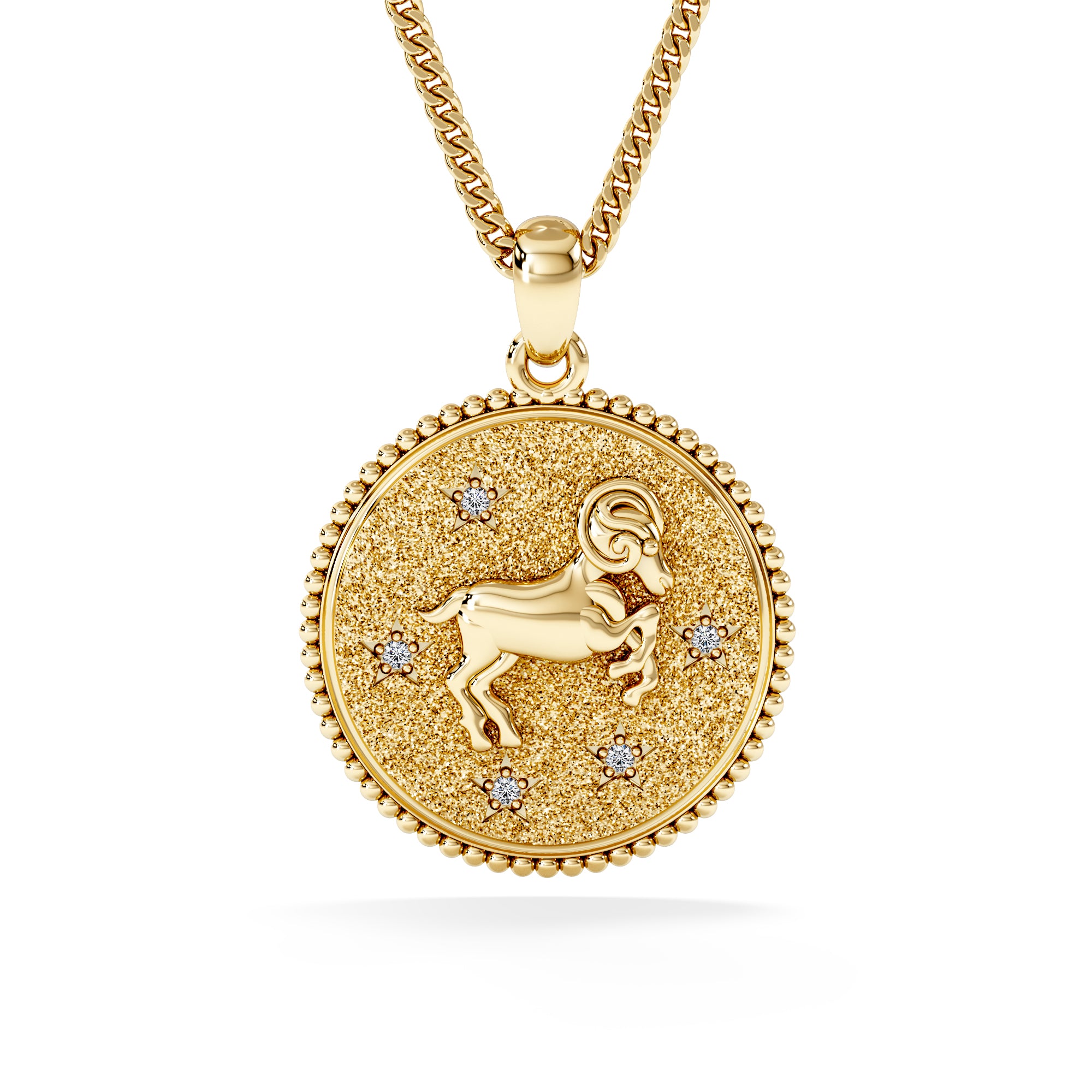Zodiac Aries Necklace Medallion Lab Grown 0.02ct in 18K Gold Vermeil