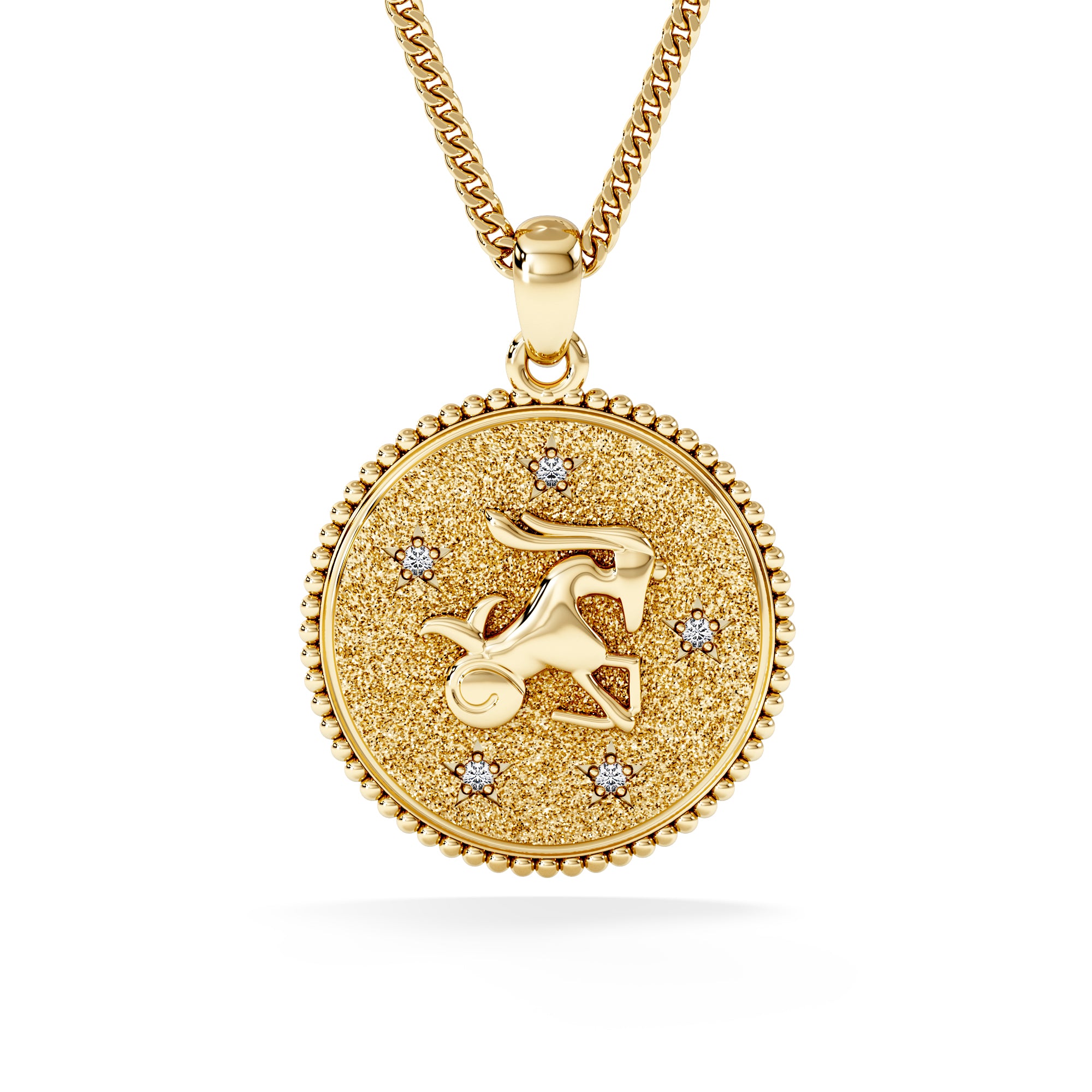 Zodiac Capricorn Necklace Medallion Lab Grown 0.02ct in 18K Gold Vermeil