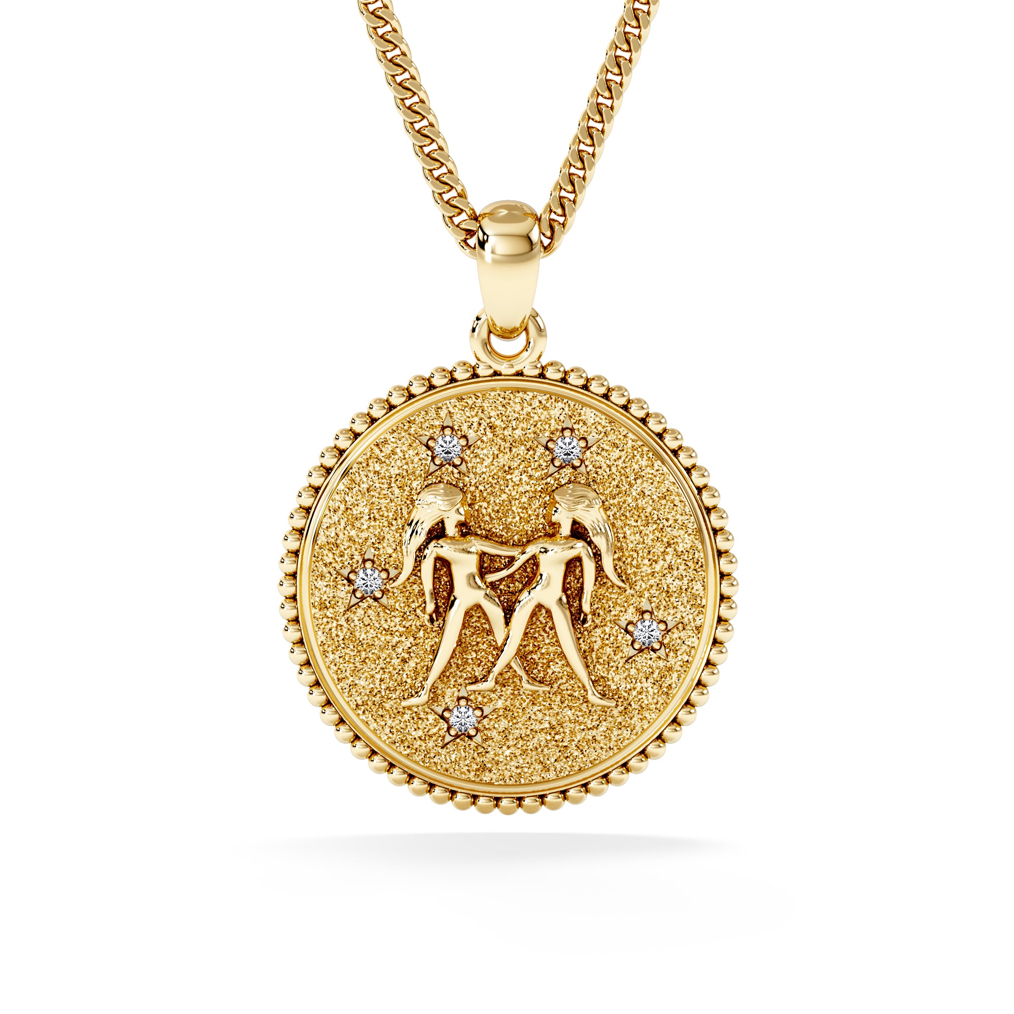 Zodiac Gemini Necklace Medallion Lab Grown 0.02ct in 18K Gold Vermeil