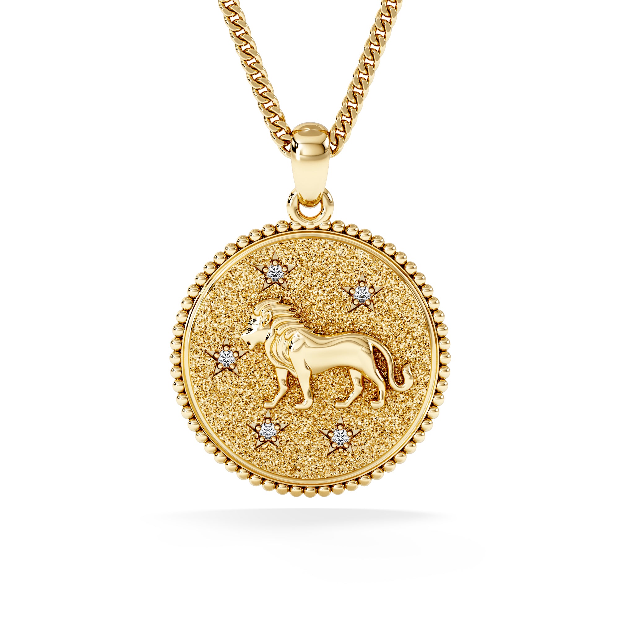 Zodiac Leo Necklace Medallion Lab Grown 0.02ct in 18K Gold Vermeil