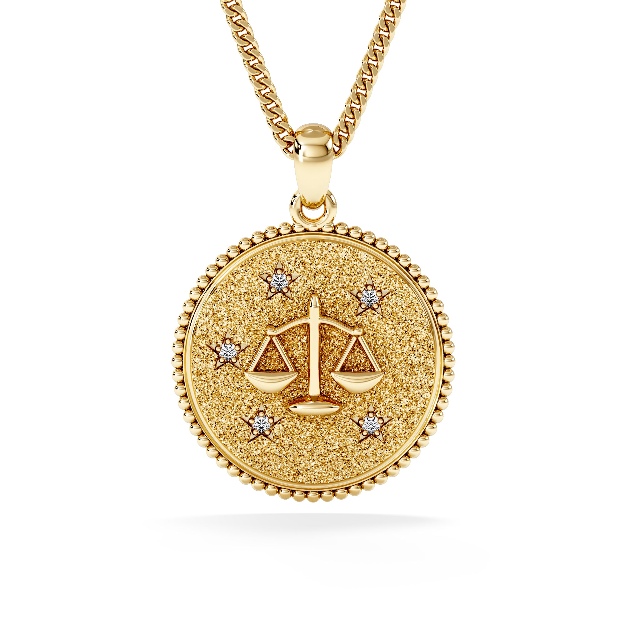 Zodiac Libra Necklace Medallion Lab Grown 0.02ct in 18K Gold Vermeil