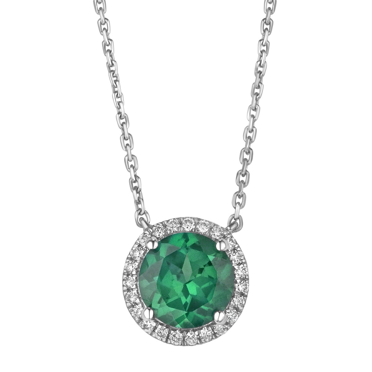 Astra 2.30ct Lab Emerald and Diamond Halo Round Cut Necklace in Silver
